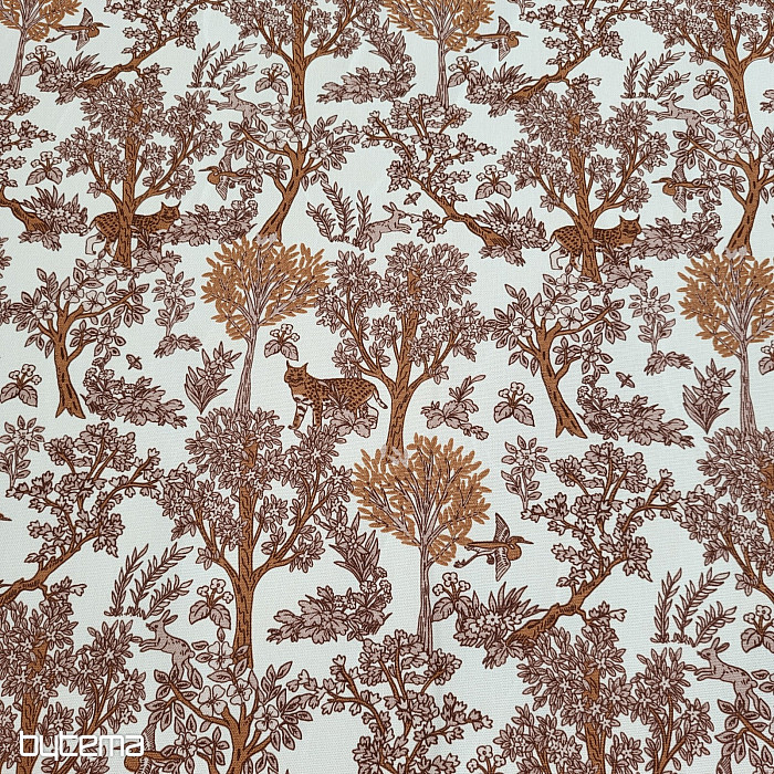 Ein Stoff mit hohem Baumwollanteil, auf dem ein kleiner Gepard zwischen den Bäumen versteckt ist, eignet sich hervorragend für Vorhänge oder Kissenbezüge für Kinderzimmer.