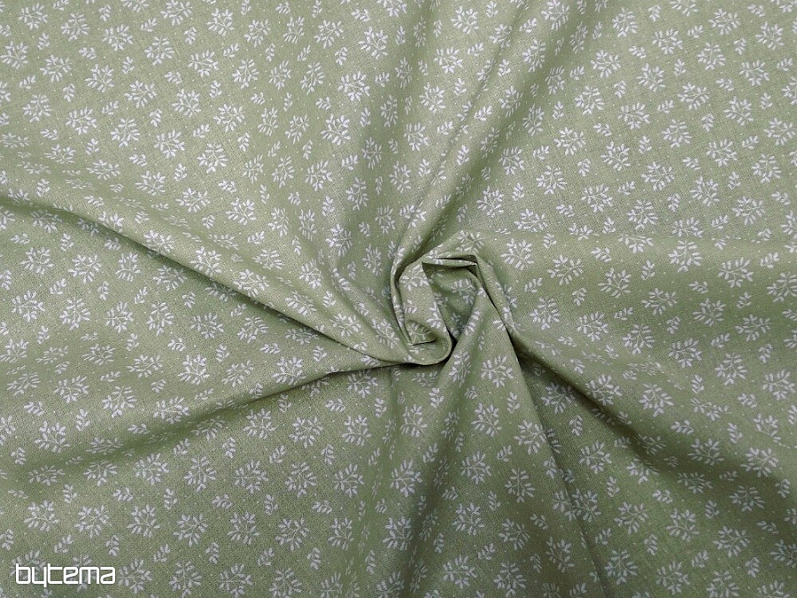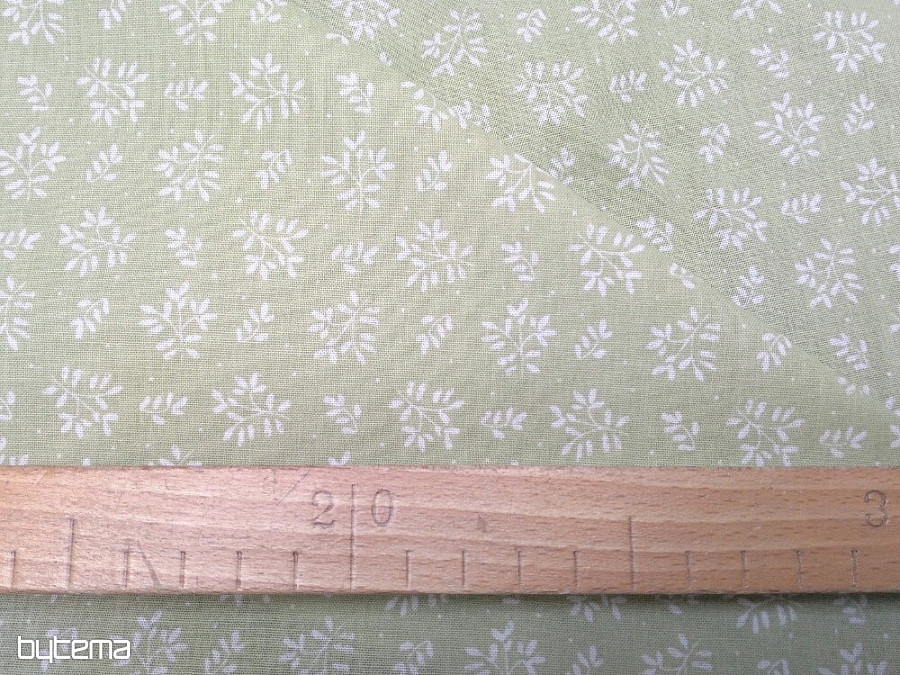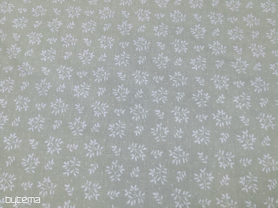 Schöner Baumwollstoff in grüner Farbe mit weißen zarten Zweigen.