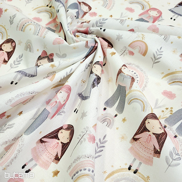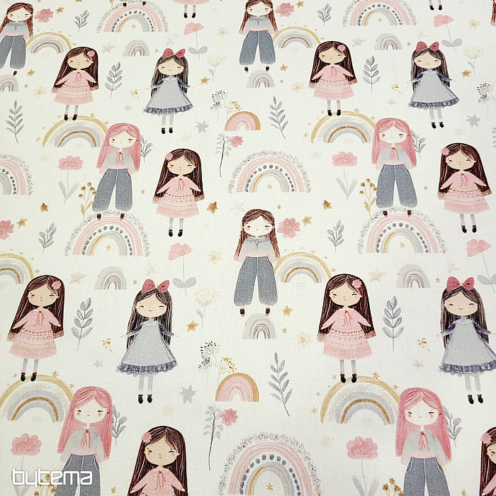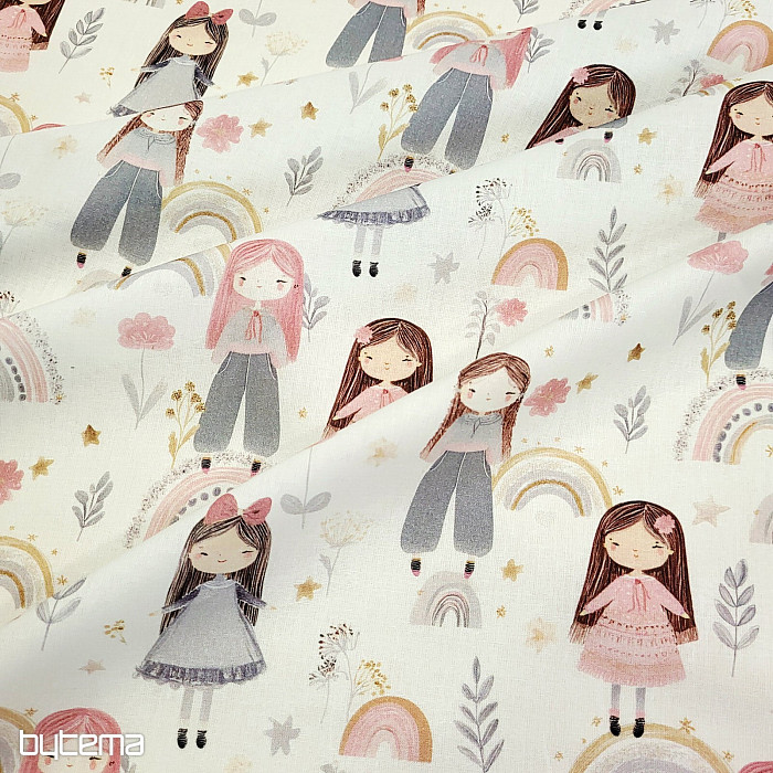 Baumwollstoff mit Abbildungen von hübschen kleinen Mädchen.