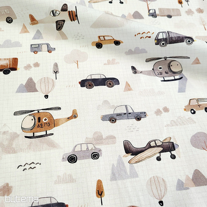 Baumwollstoff für Jungen und Transportbegeisterte. Der Stoff ist für die Herstellung von Kinderbettwäsche zertifiziert.