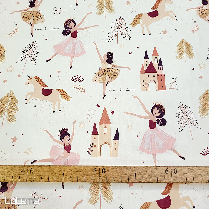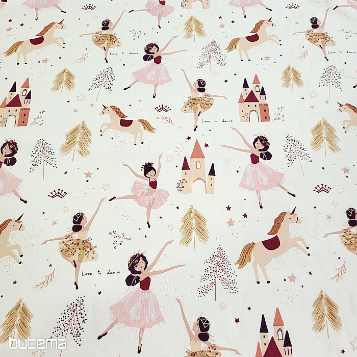 Baumwollstoff für kleine Mädchen, die tanzende Prinzessinnen und Einhörner lieben. Die perfekte Kombination der beliebtesten Dinge für unsere Kleinen.