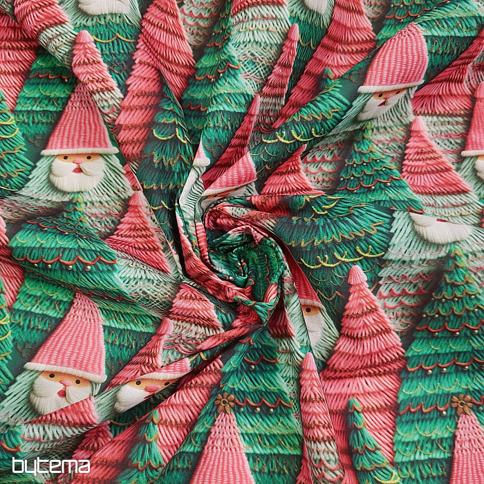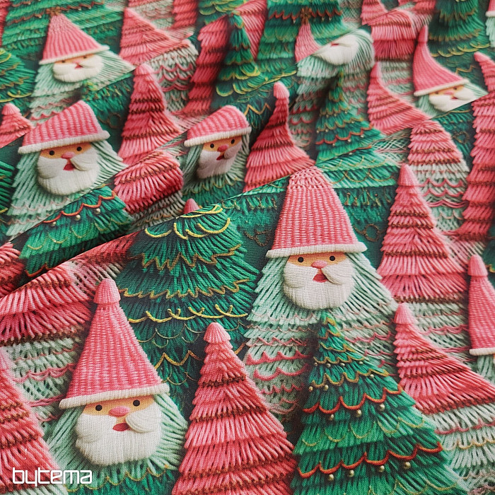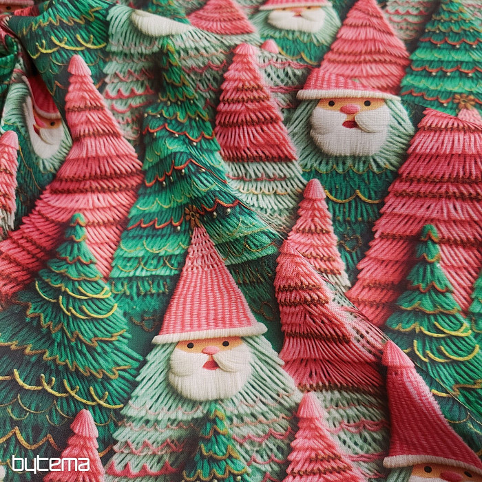 Weihnachtlicher Dekostoff mit dem niedlichen Gesicht des Elfen Arthur, der sich im Wald verirrt hat. Der Stoff eignet sich zum Nähen von Tischdecken, Vorhängen und Kissenbezügen.