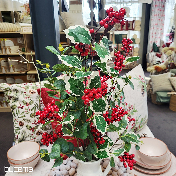 Dekoration für die Winterzeit. Der 90 cm lange Zweig trägt tiefrote Beeren, die sich perfekt für die Dekoration im Innen- und Außenbereich eignen.