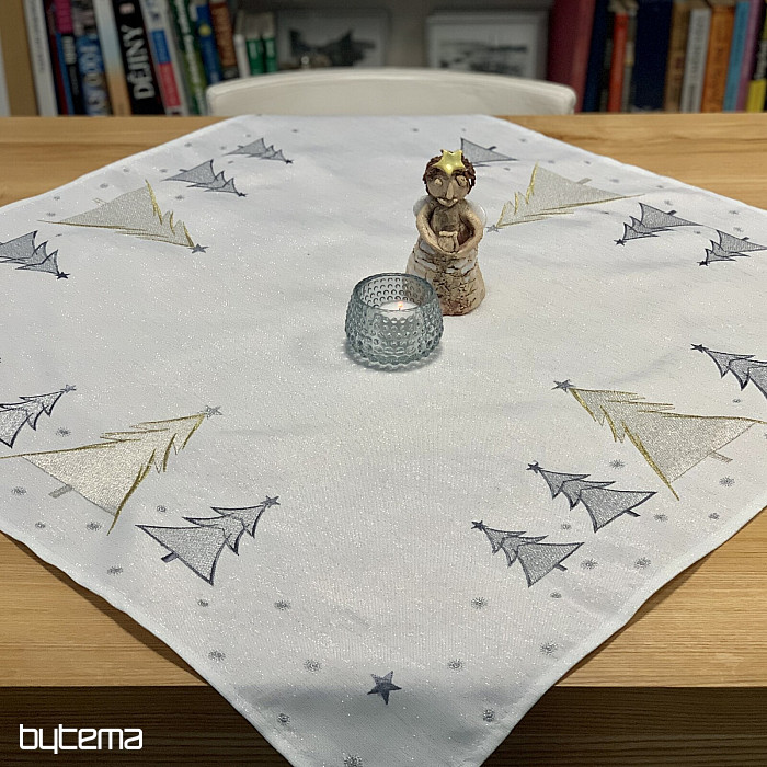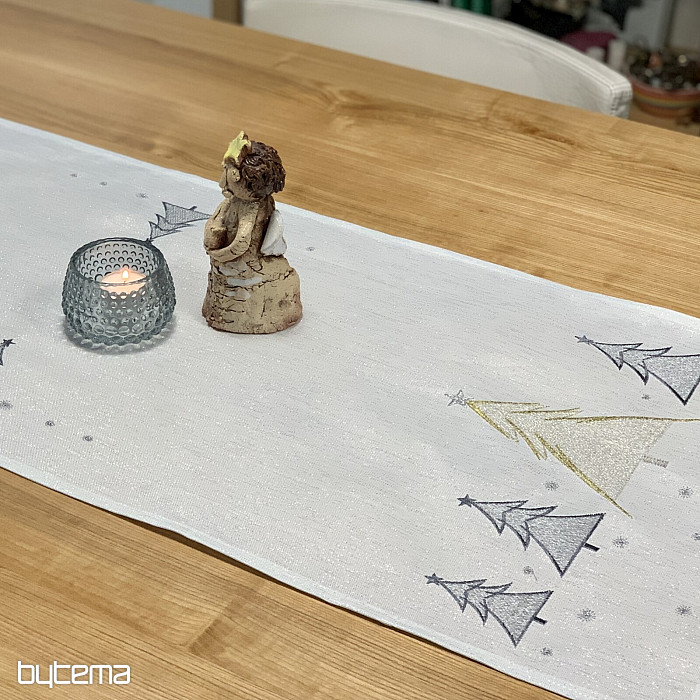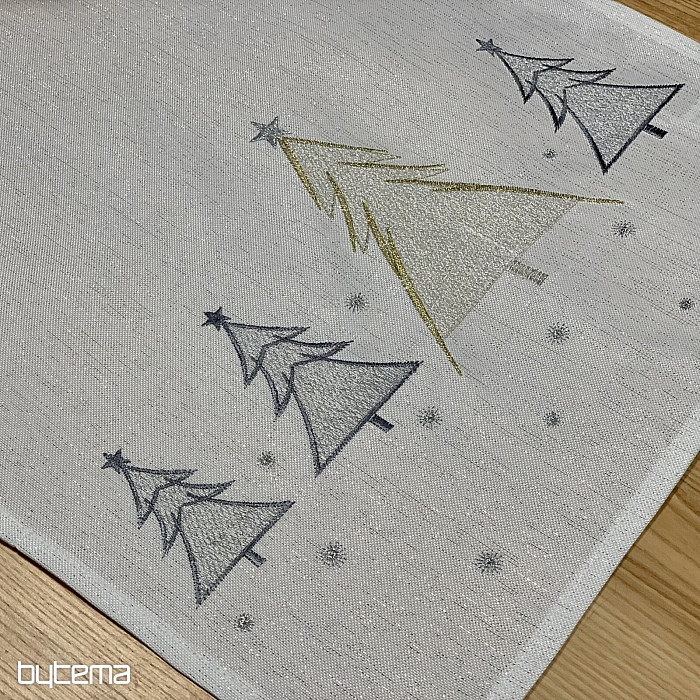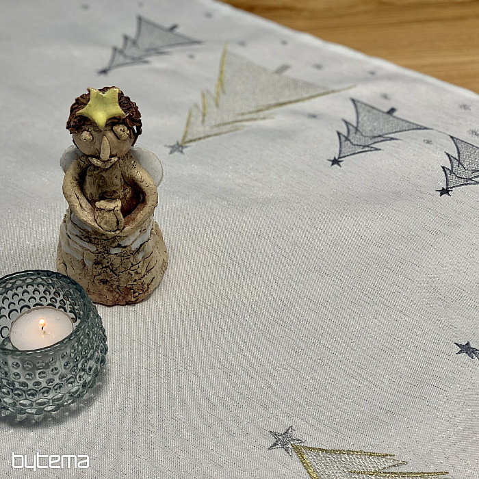 Eine geschmackvoll und fein bestickte Weihnachtstischdecke und ein passender Schal mit Bäumchenmotiven in zwei Farben sind eine charmante Bereicherung für Ihr Zuhause.