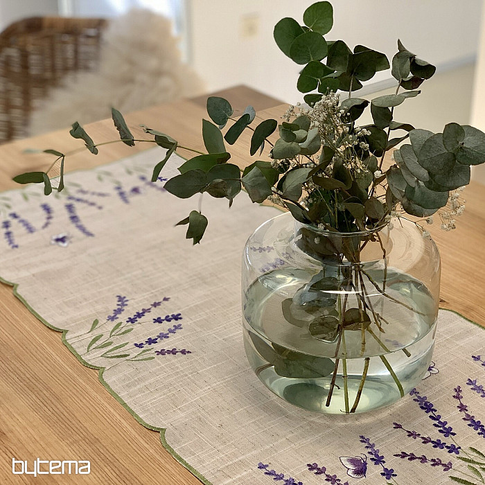 Ein zartes Stickmuster Ihrer Lieblingslavendelblüten bringt deren Duft direkt in Ihr Zuhause.