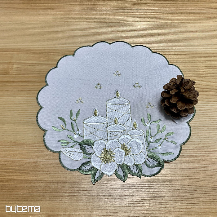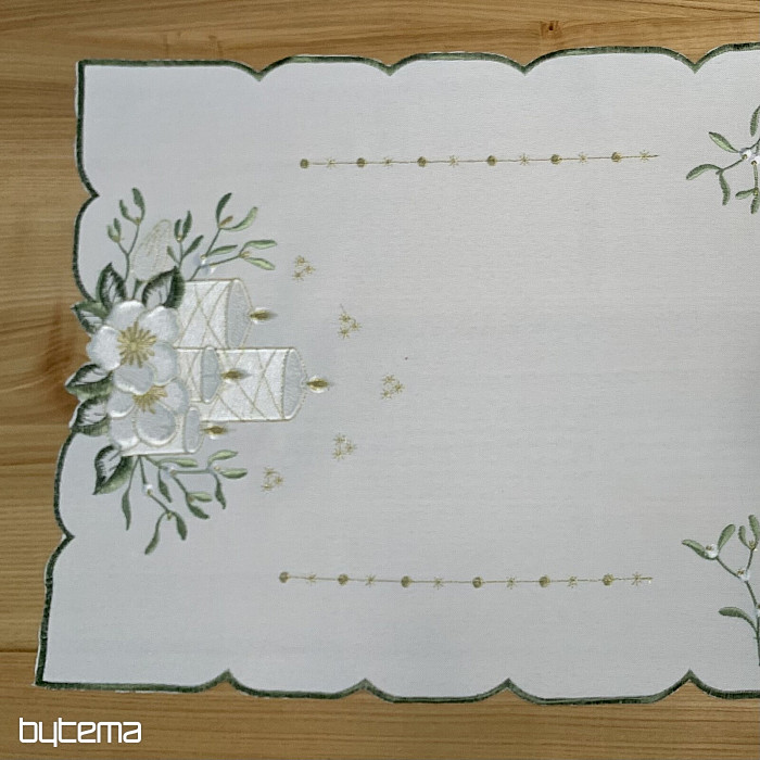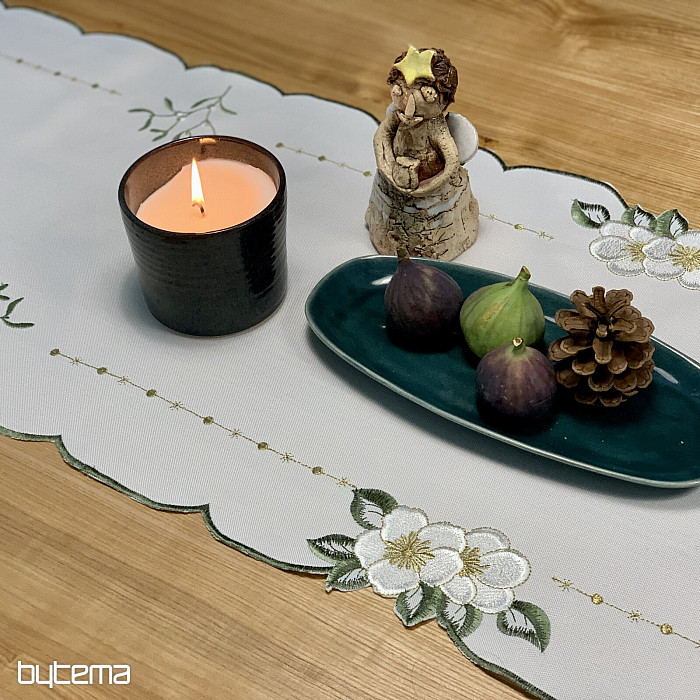 Eine geschmackvoll und zart bestickte Weihnachtstischdecke mit Adventskerzen in Weiß ist eine charmante Ergänzung für Ihr Zuhause.