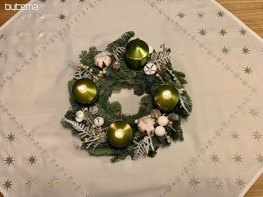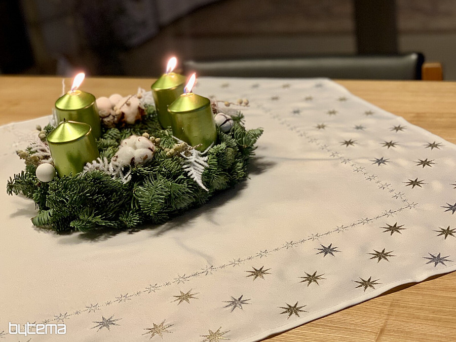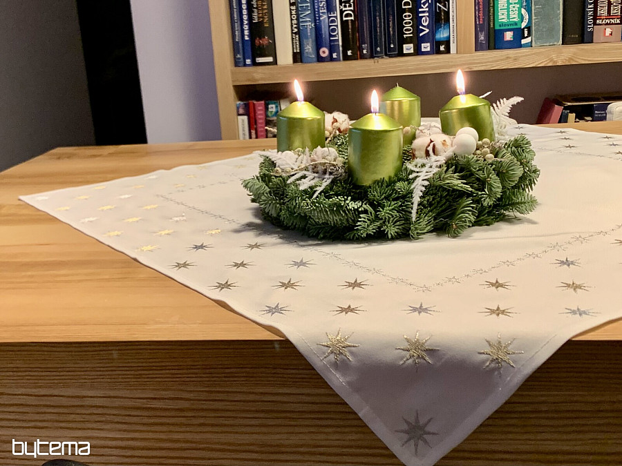 Die bestickte Weihnachtstischdecke mit Sternen ist die perfekte Dekoration für Ihren Feiertagstisch.