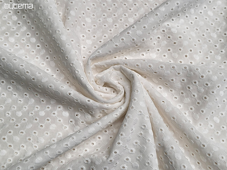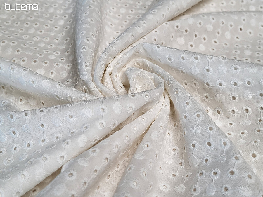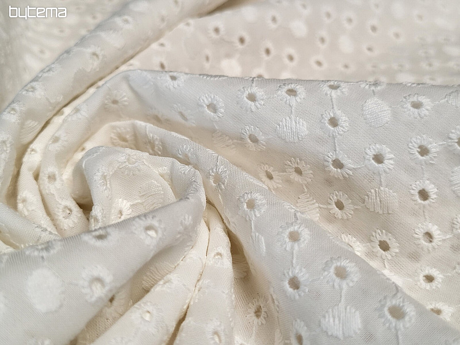 Wunderschöner bestickter Musselin in Cremefarbe mit aufgestickten zarten Blumen.
