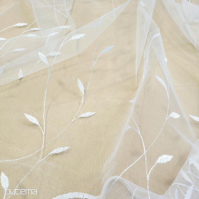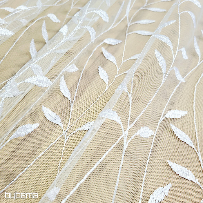 Vorhang mit vollflächiger Stickerei, wunderschöne, zarte, dezente Blätter.