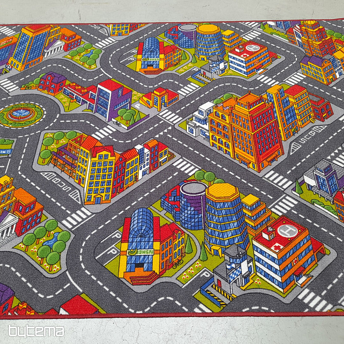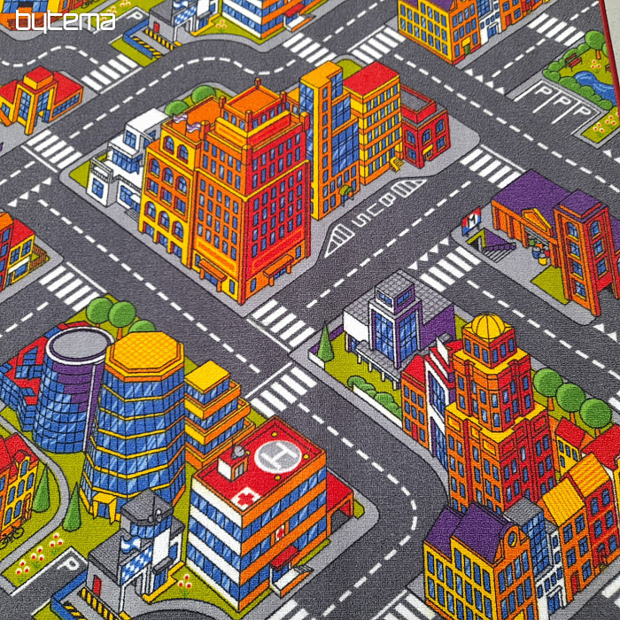 Der Kinderteppich simuliert Städte und Dörfer mit zahlreichen Straßen und Wegen. Es besteht aus Polyamid, das äußerst langlebig ist. Dank seines niedrigen Flors ist es pflegeleicht.