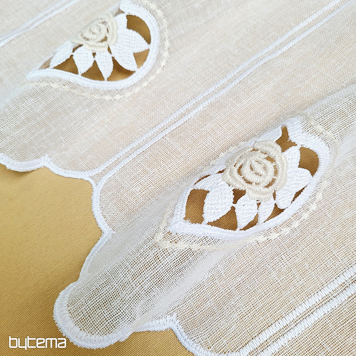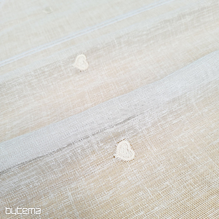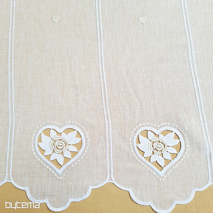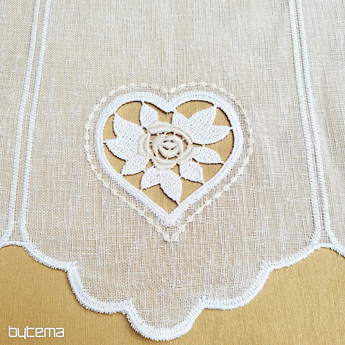 Der 70 cm hohe Vorhang hat in der Mitte ein kleines, aufgesticktes Herz.