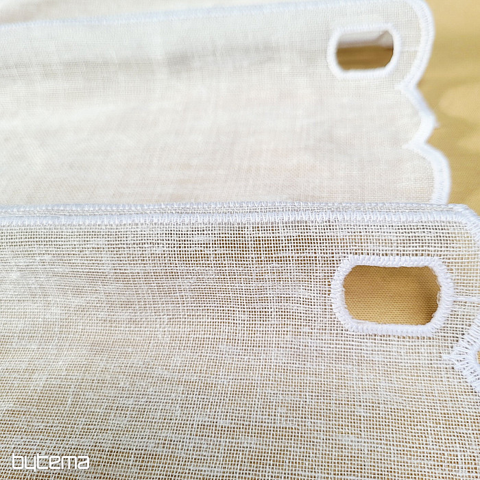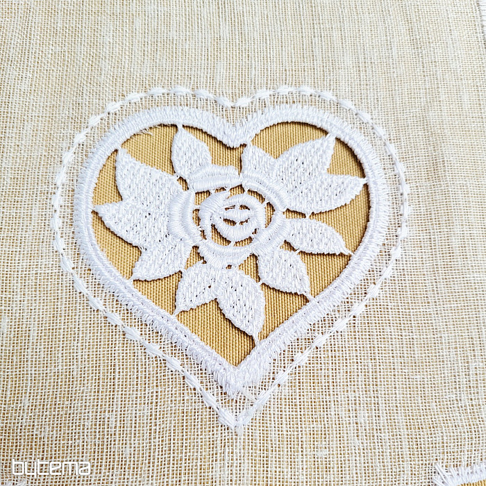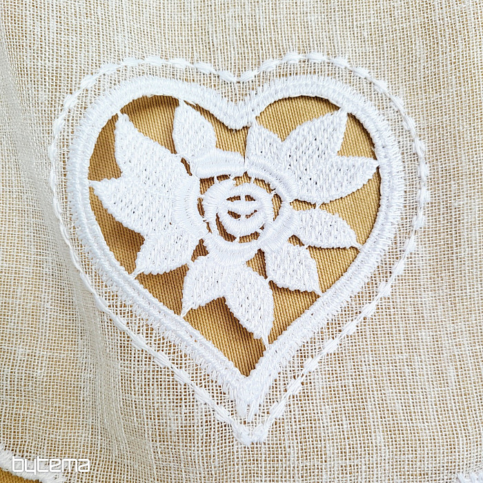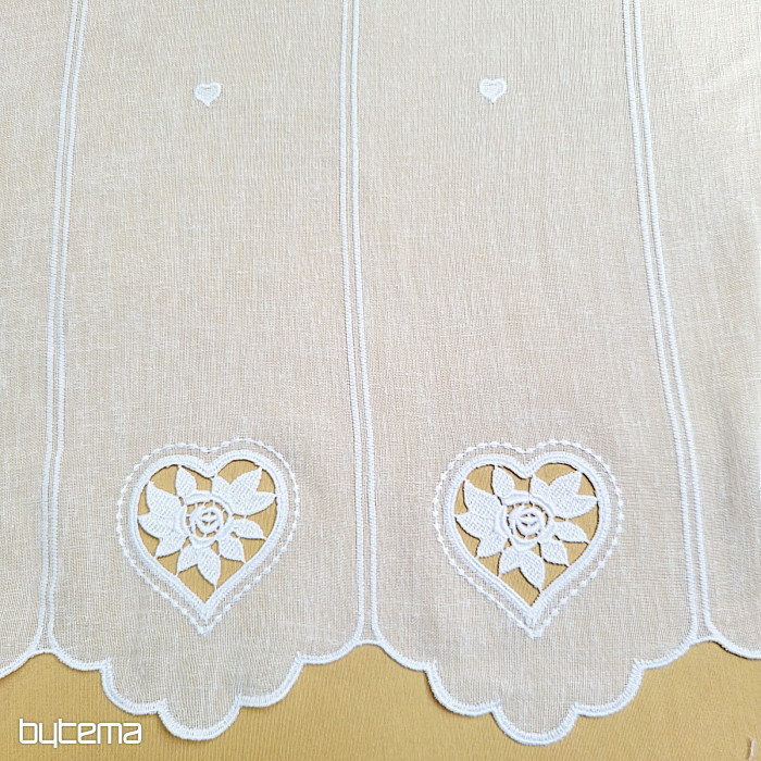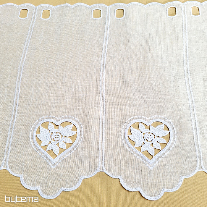 Der 70 cm hohe Vorhang hat in der Mitte ein kleines, aufgesticktes Herz.
