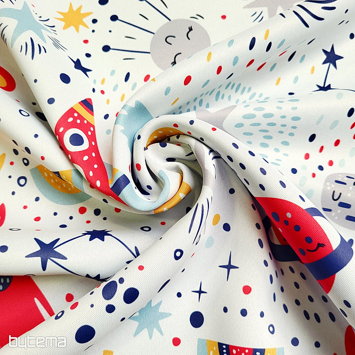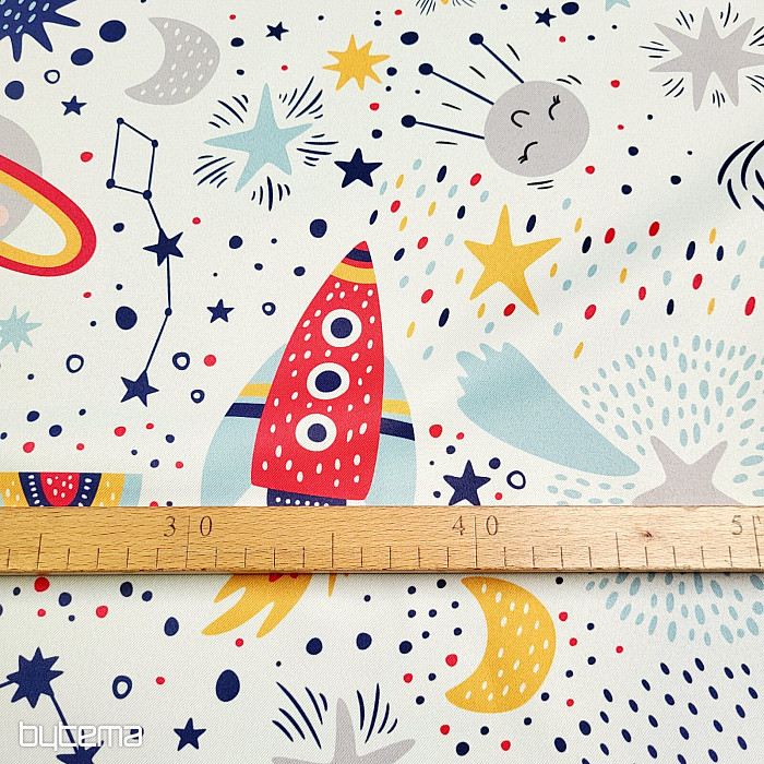 Wunderschöner farbenfroher Dekorationsstoff aus der BLACK OUT-Serie für alle Jungen und Weltraumliebhaber. Vorhänge mit diesem Design werden zum Mittelpunkt jedes Raumes.