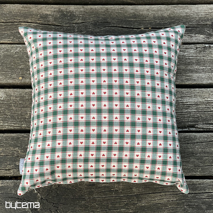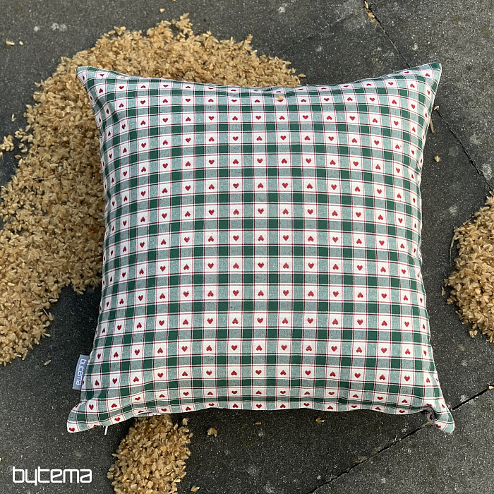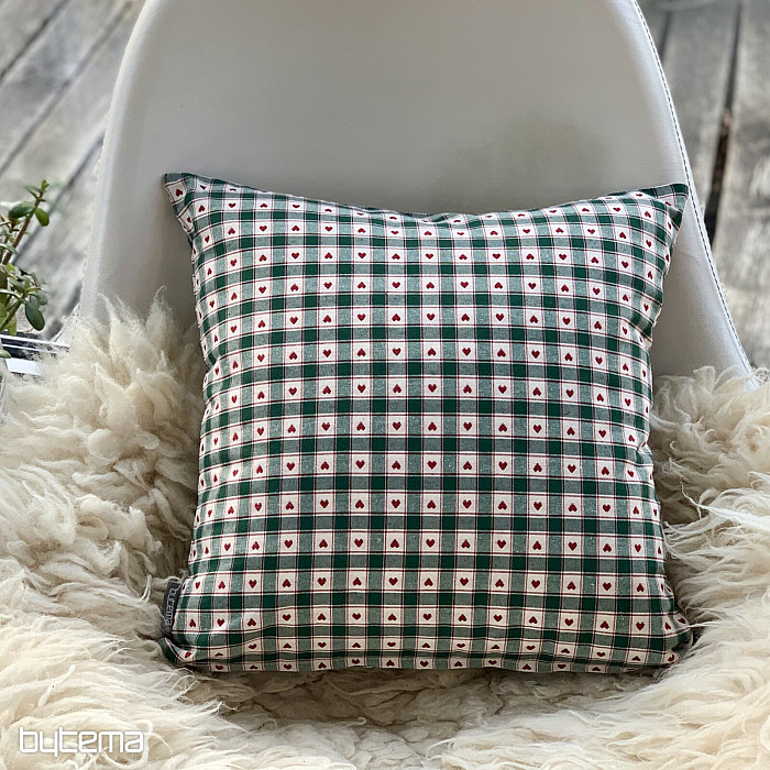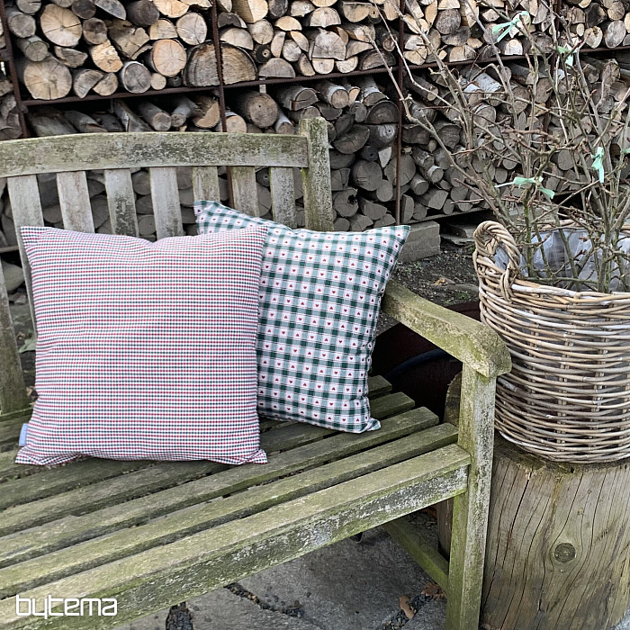 Dekorative Kissenbezüge im Schachbrett- und Herzmuster eignen sich perfekt für Landhäuser und Blockhütten.
