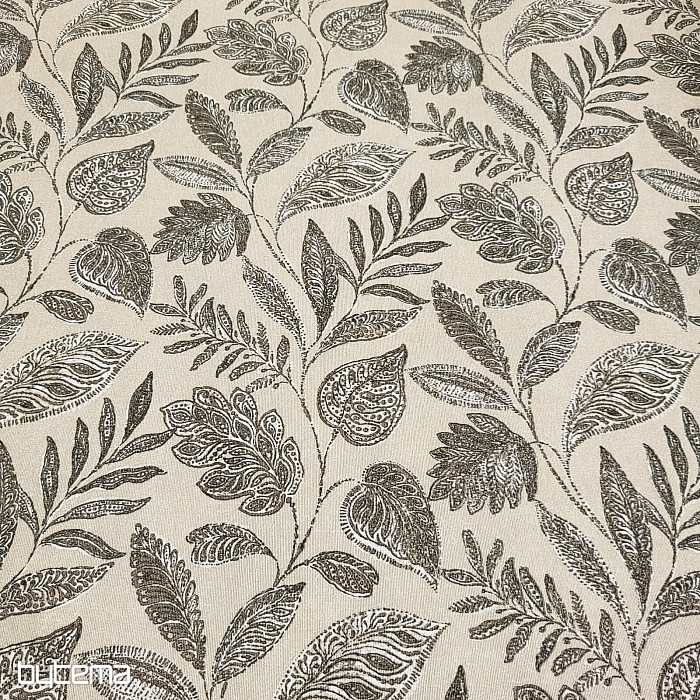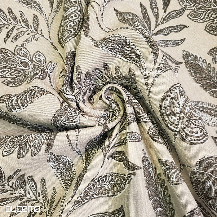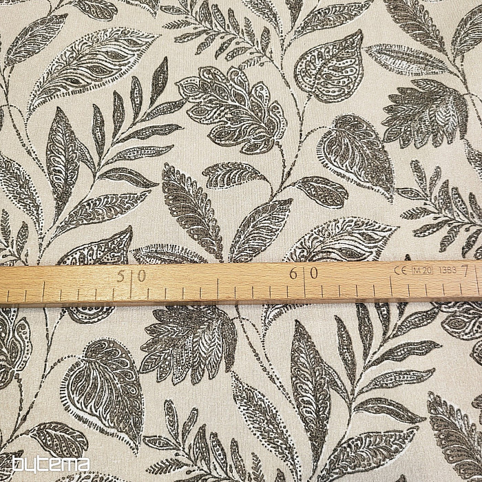 Dekorativer Stoff mit großen Blättern verschiedener Art.