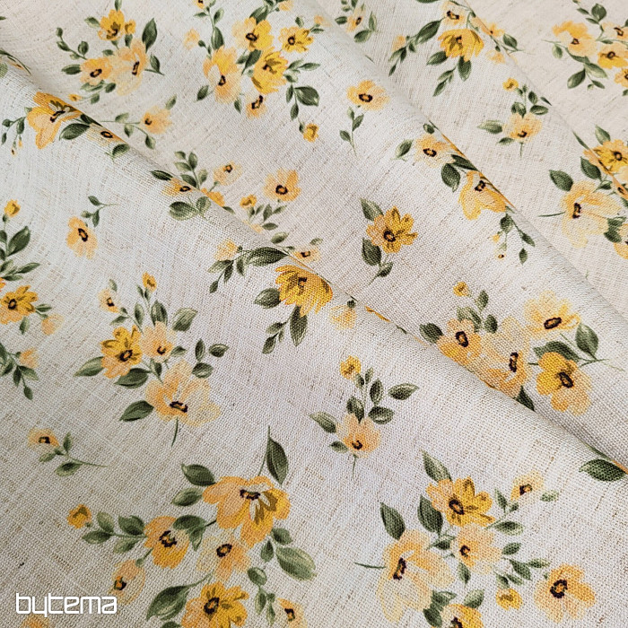 Dekorativer Stoff mit Frühlingsblumen in einem satten Gelbton schmückt Ihre Küche und Pergola.