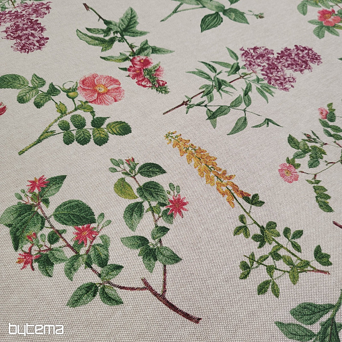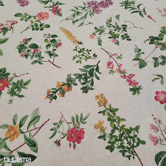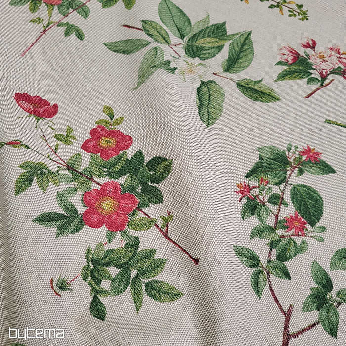 Dekorativer Stoff mit einem üppigen Blumenmuster auf schlichtem Hintergrund wird ein gestalterisches Highlight in Ihrem Zuhause sein.