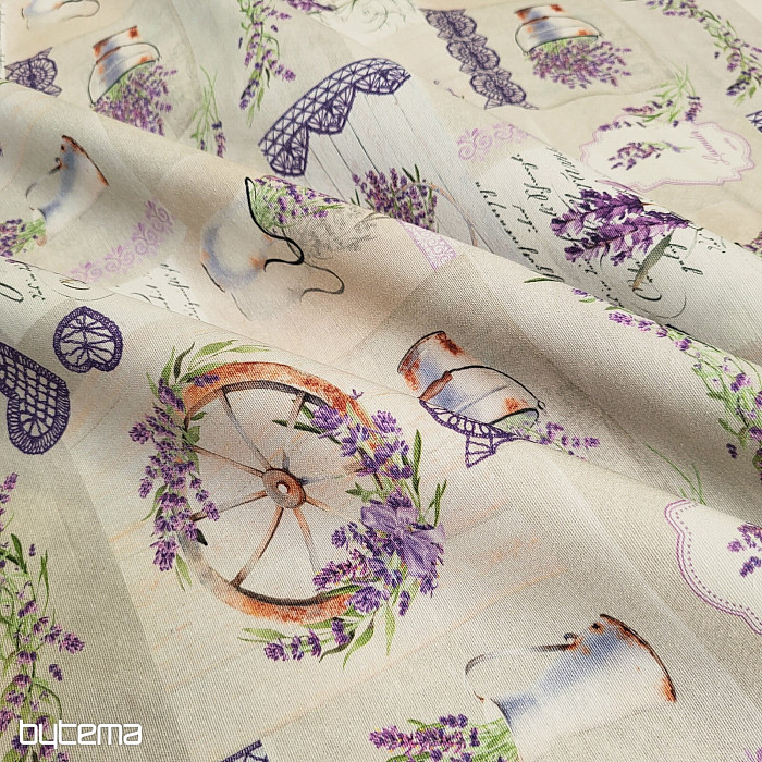 Ein wunderschöner, dekorativer Stoff im Landhausstil mit Lavendeltönen wird Sie auf den ersten Blick verzaubern.