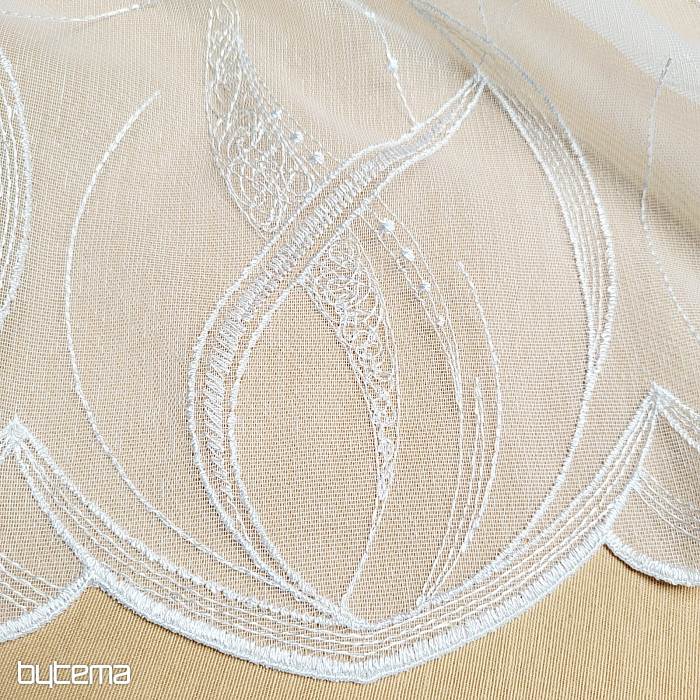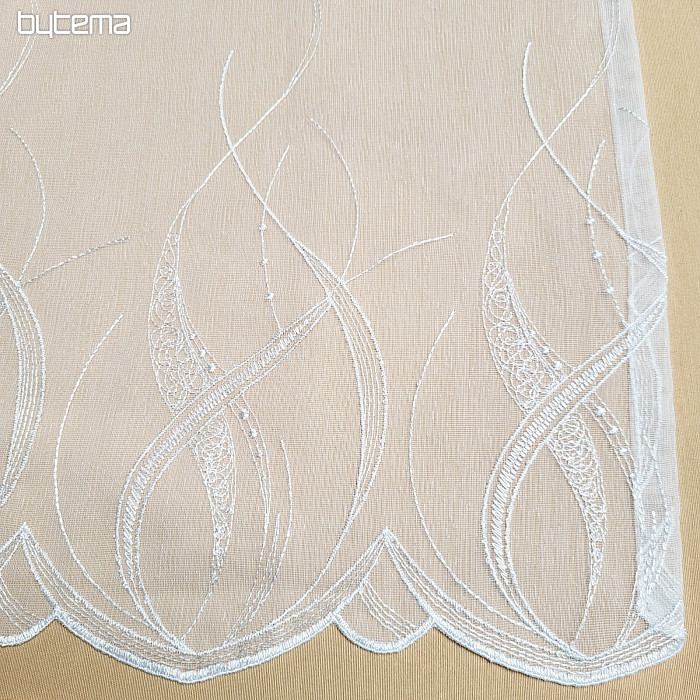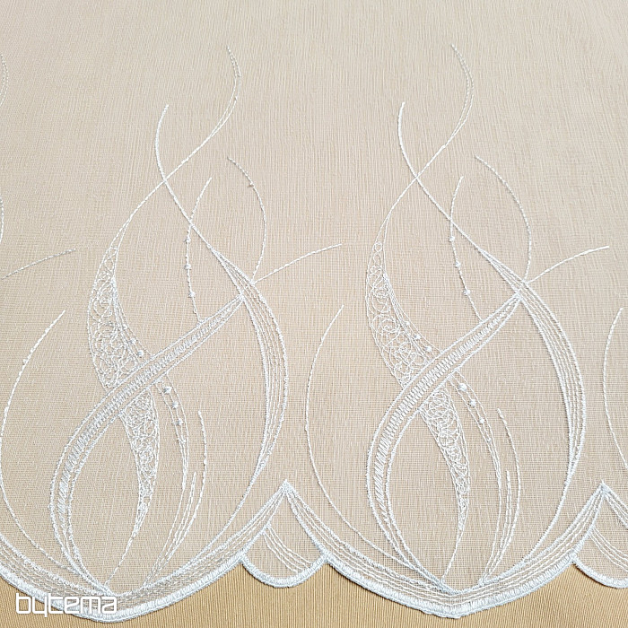 Der fertige leichte Vorhang mit zarter Stickerei im modernen Stil schmückt Ihr Fenster.