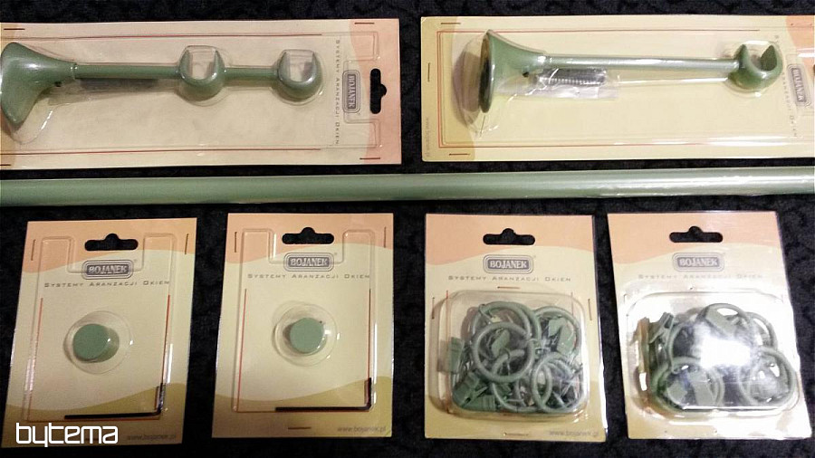 Farbige Metallgardinenstangen in einfacher Ausführung und mit dem Endstück. Stangendurchmesser beträgt 16 mm. Das System können Sie nach Ihren Ausmaßen und Bedürfnissen zusammenstellen. Wenn Sie eine längere Gardinenstange über 240 cm benötigen, muss die Plastikverbindung für zwei Stangen und die dritte Konsole in der Mitte zum Stützen benutzt werden.