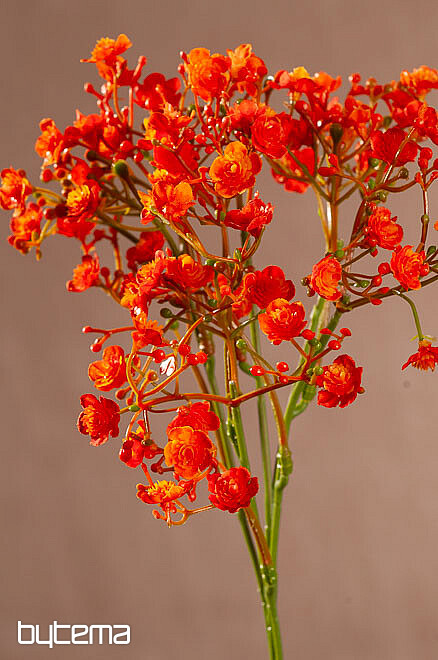 Die winzigen orangefarbenen Blüten sind dicht auf einem 46 cm langen Stiel „gesät“. Die Blüten haben eine satte Farbe und sind von hellem Orange bis dunkler getönt.