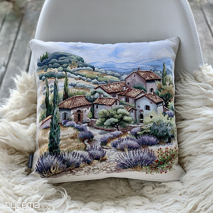 Ein Kissenbezug aus Gobelin mit einem Motiv von südlichen Weiten und Sommerbrisen sorgt garantiert für Entspannung.