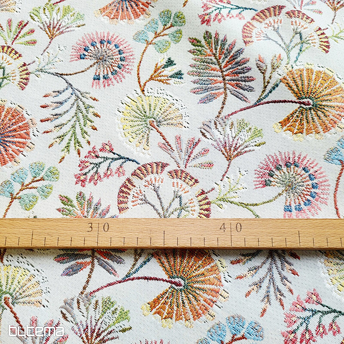 Neu im Sortiment: Gobelinstoff mit farbenfrohen Blumen. Die dezenten, aber dennoch leuchtenden Farben verleihen dem Stoff Eleganz.