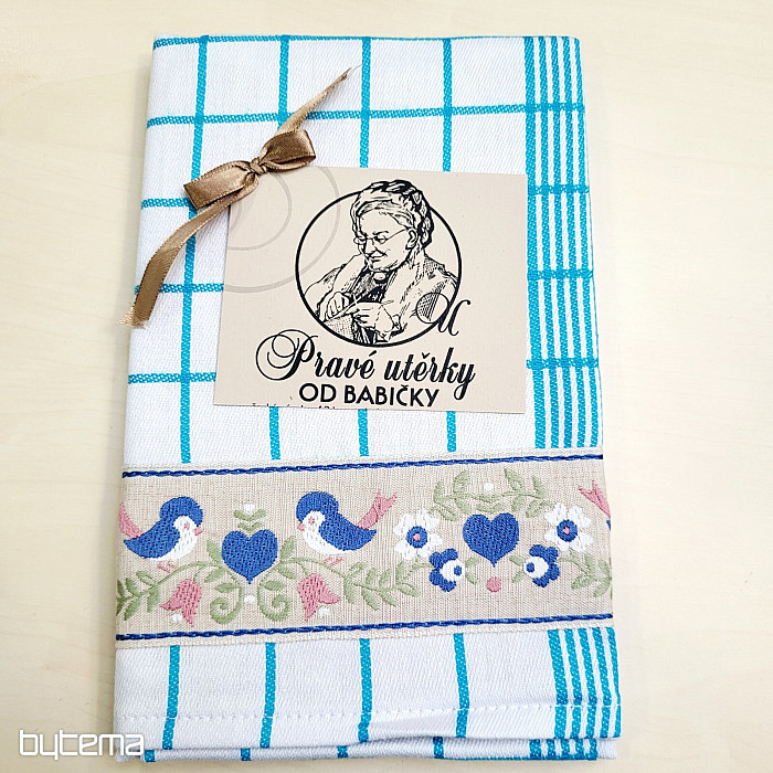 Weiche Baumwoll-Geschirrtücher mit Karomuster und einem Saum mit niedlichen Vögeln. Eine wunderschöne und zarte Dekoration für Ihre Küche.