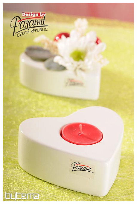 Herzförmiger Kerzenhalter für ein Teelicht mit einem Durchmesser von 4 cm. Er ist aus hochwertigem Porzellan gefertigt und in Weiß erhältlich.