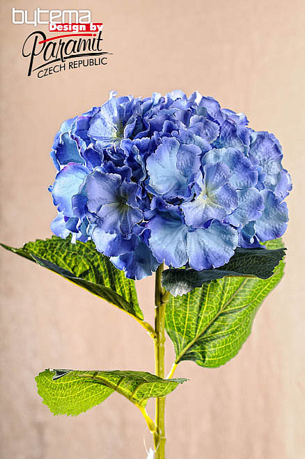 Hortensie mit einer herrlichen Blüte. Blümchen sind getönt und bilden die Blütenfülle mit gesamtem Durchmesser von 14 cm. Auf einem dicken Stengel sind drei Blätter grünlicher Farbe. Hortensie sieht in der Vase Marke Paramit zauberhaft aus. Sie können auch mehrere Blüten vermischen und so gewinnen Sie einen reichen Blumenstrauß. Dank dem natürlichen Stengel wird die Blume auch schön in einer Glasvase aussehen.