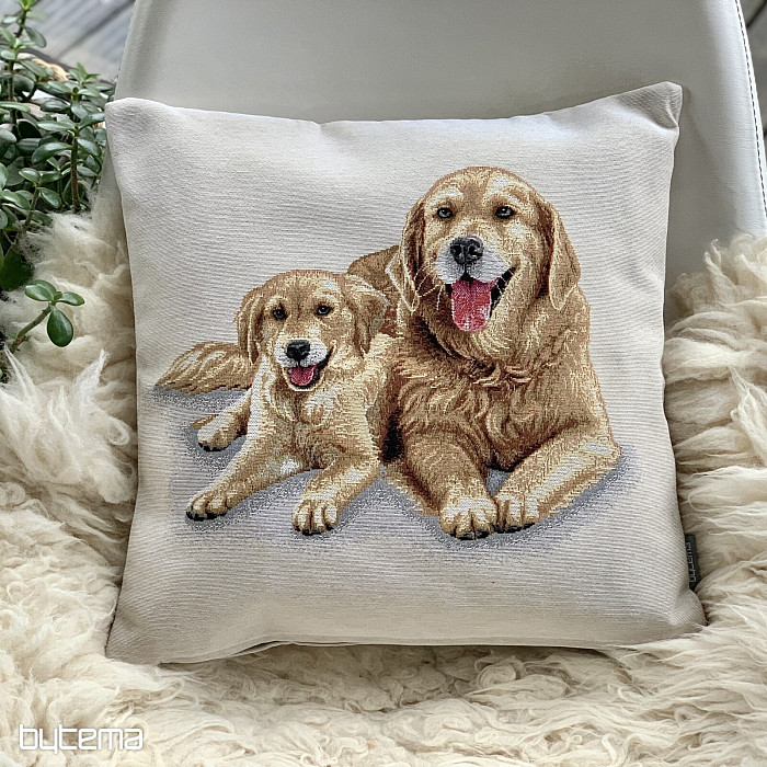 Kissenbezug mit Wandteppichmotiv: Labrador und ein süßer Welpe. Ein wunderschönes Geschenk für alle Hundeliebhaber.