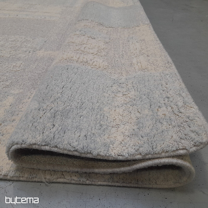 Luxuriöser belgischer Teppich in Pastellfarben mit geometrischen 3D-Mustern. Der plastische Effekt entsteht durch den unterschiedlich angeordneten Flor aus Schafwolle. Dies garantiert dem Teppich hohe Strapazierfähigkeit und Langlebigkeit.