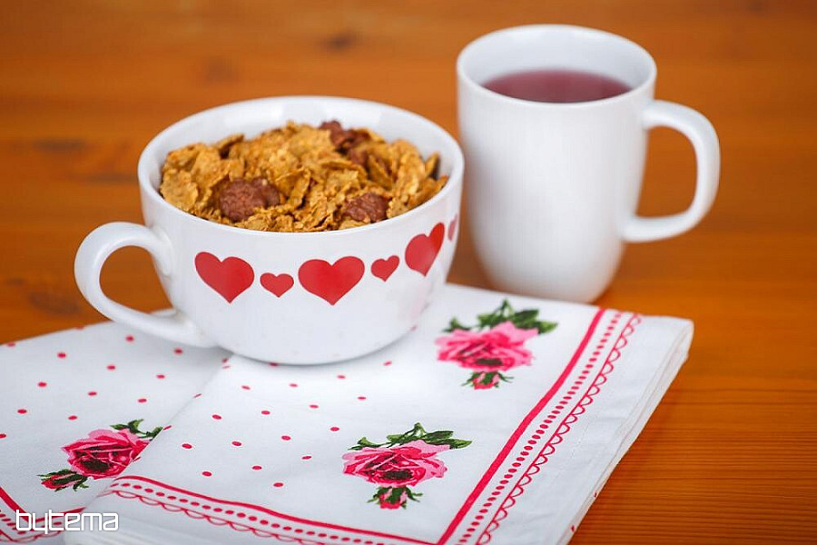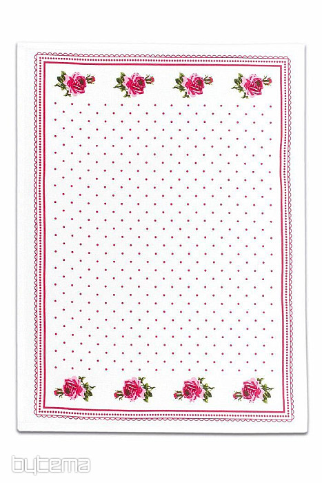 Geschirrtücher aus Baumwolle mit einem aufgedruckten Rosen- und Punktmuster bringen einen Hauch von Nostalgie in Omas Küche.