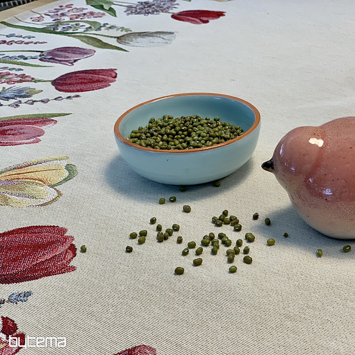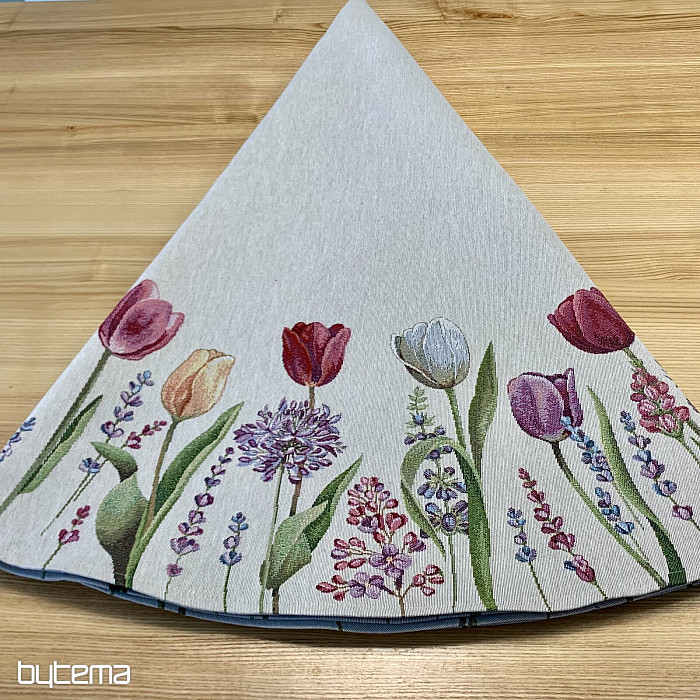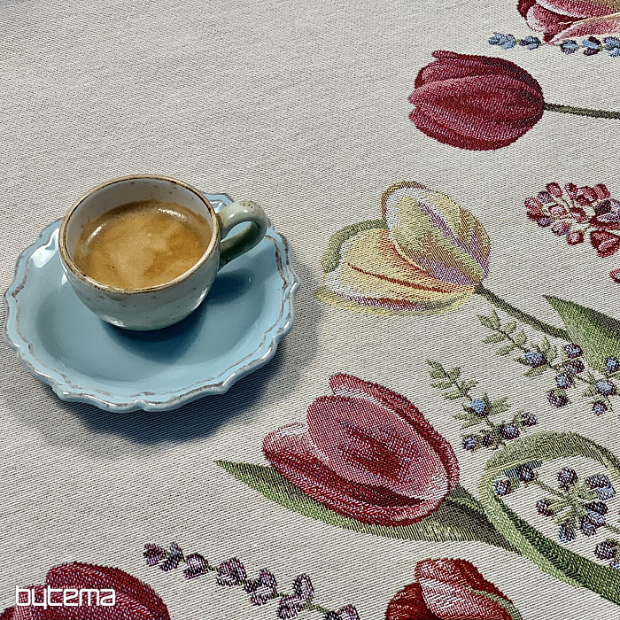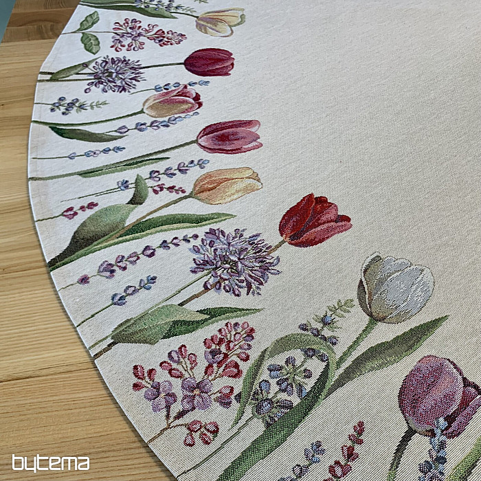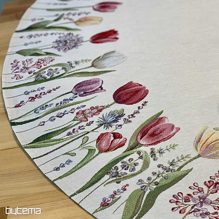 Das Tulpenmotiv auf dieser Wandteppich-Tischdecke ist einfach zauberhaft. Ihr Esszimmer wird in voller Blüte stehen.