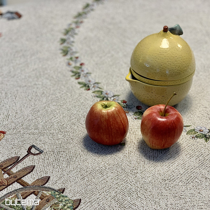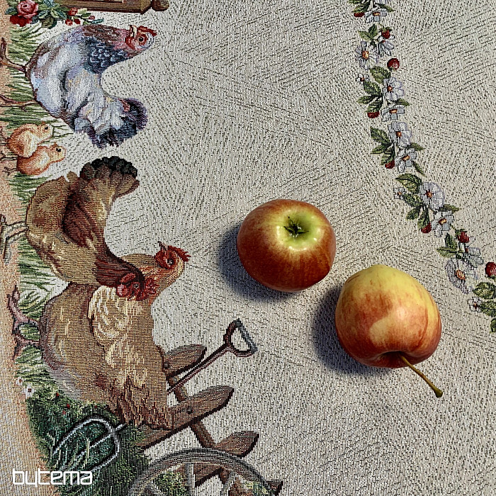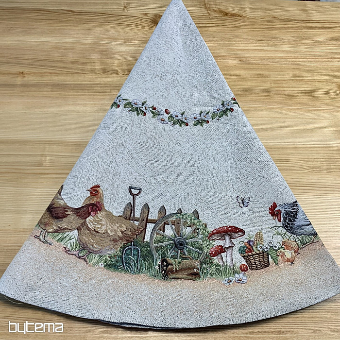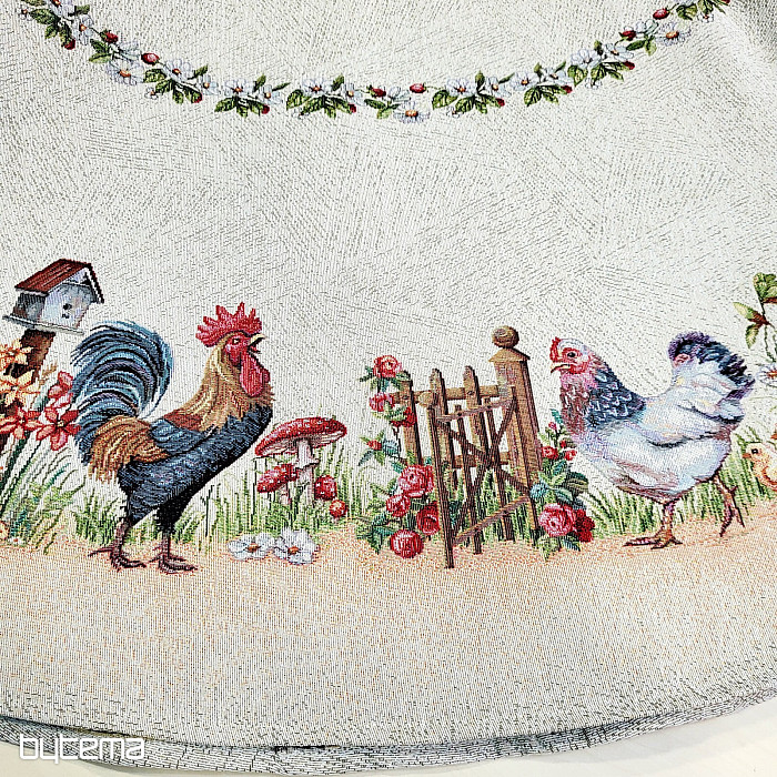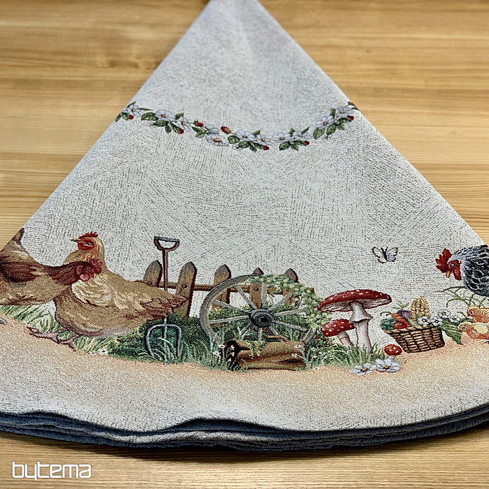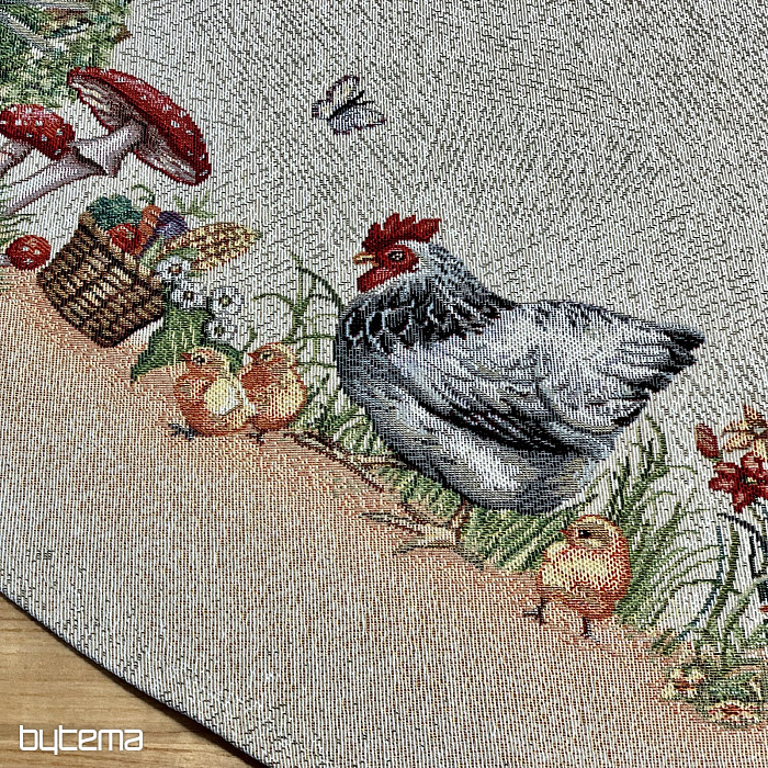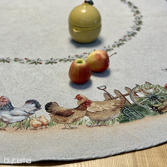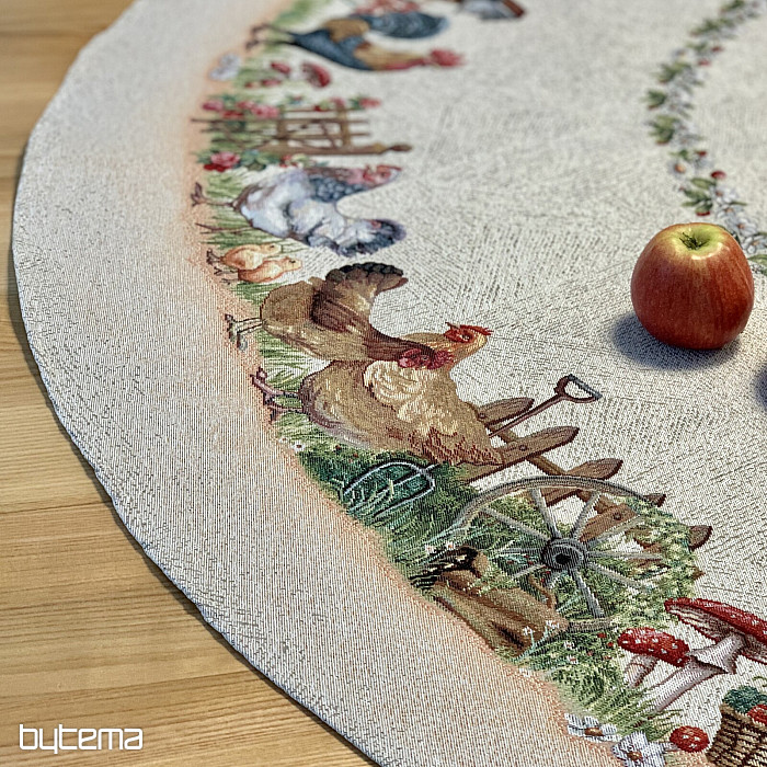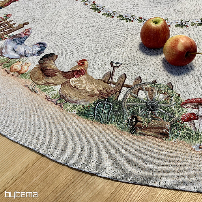 Eine runde Tischdecke aus robustem Gobelinstoff wird jeden Landwirt oder Tierliebhaber erfreuen.