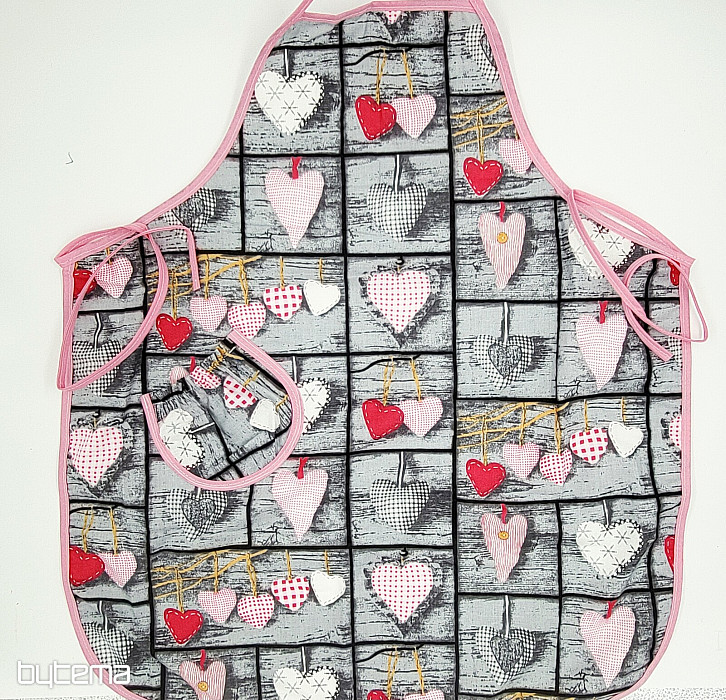 Eine hübsche Schürze mit Herzchenmuster passt zu jedem Koch.