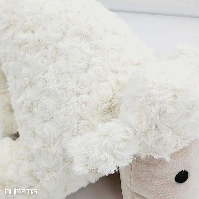 Dieses Kissen besteht aus Schafwollimitat.
