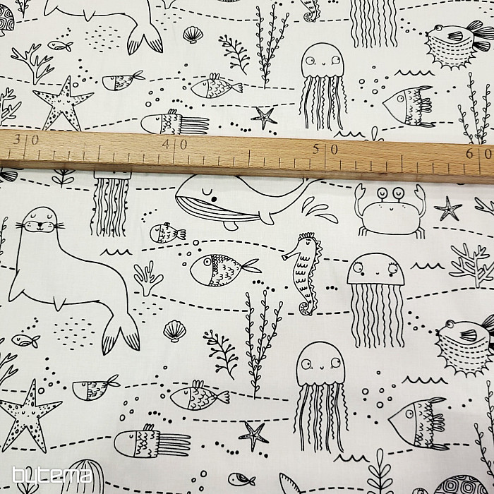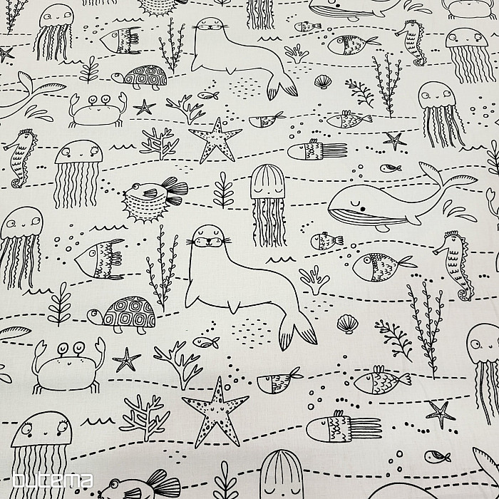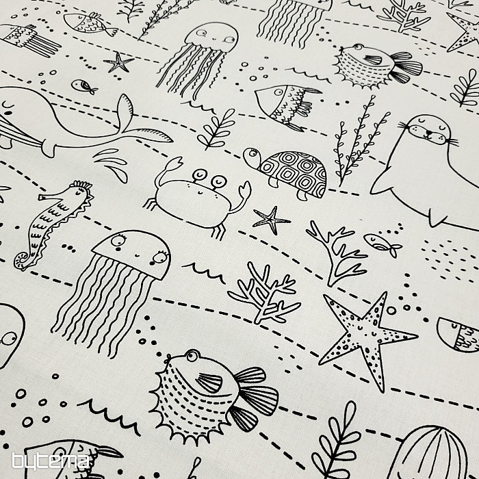 Stoff mit Unterwassermotiven, den Kinder nach ihrer Fantasie selbst ausmalen können.