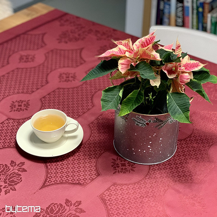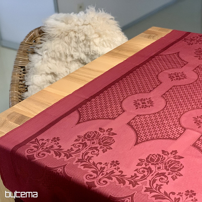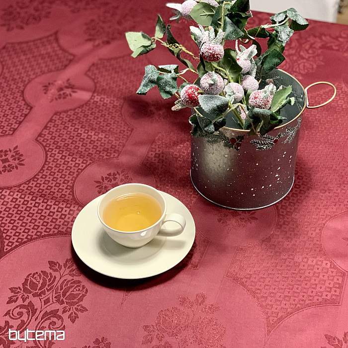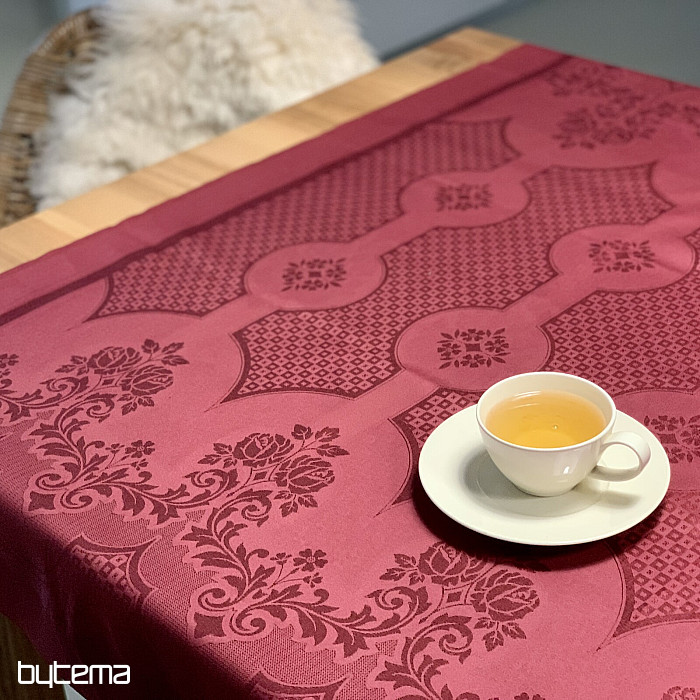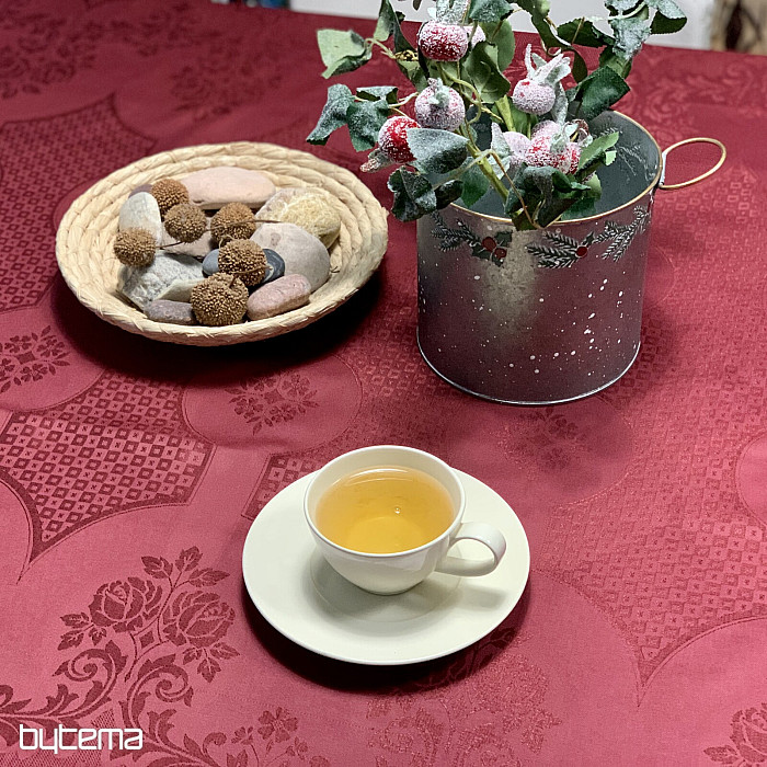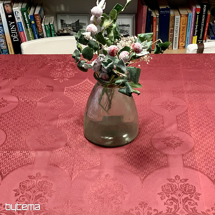 Damast verleiht Ihrem Interieur einen Hauch von Luxus; in Burgunderrot bringt er die Wärme einer familiären Atmosphäre in Ihre Räume.