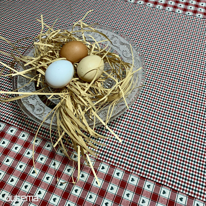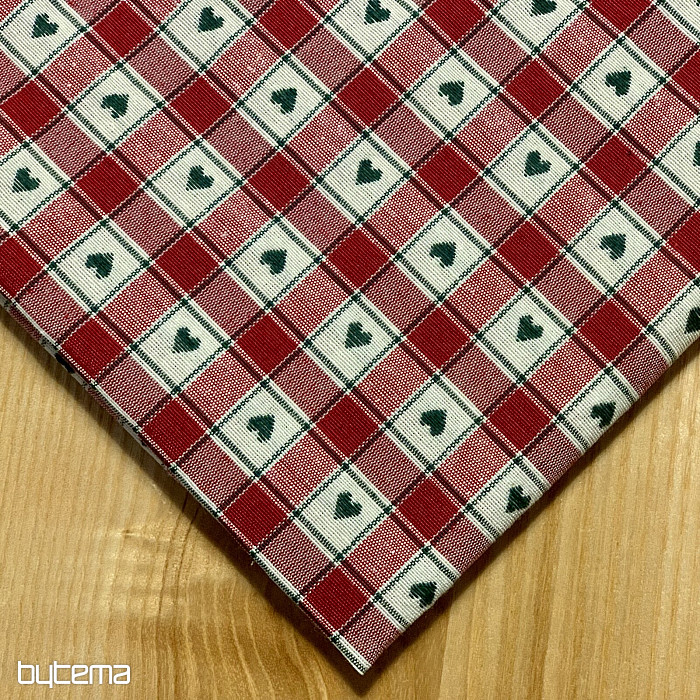 Eine dekorative Tischdecke und ein Schal im Karo- und Herzmuster sind perfekt für Landhäuser und Blockhütten.