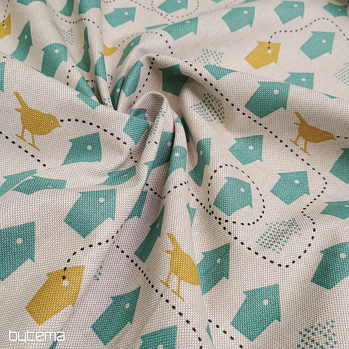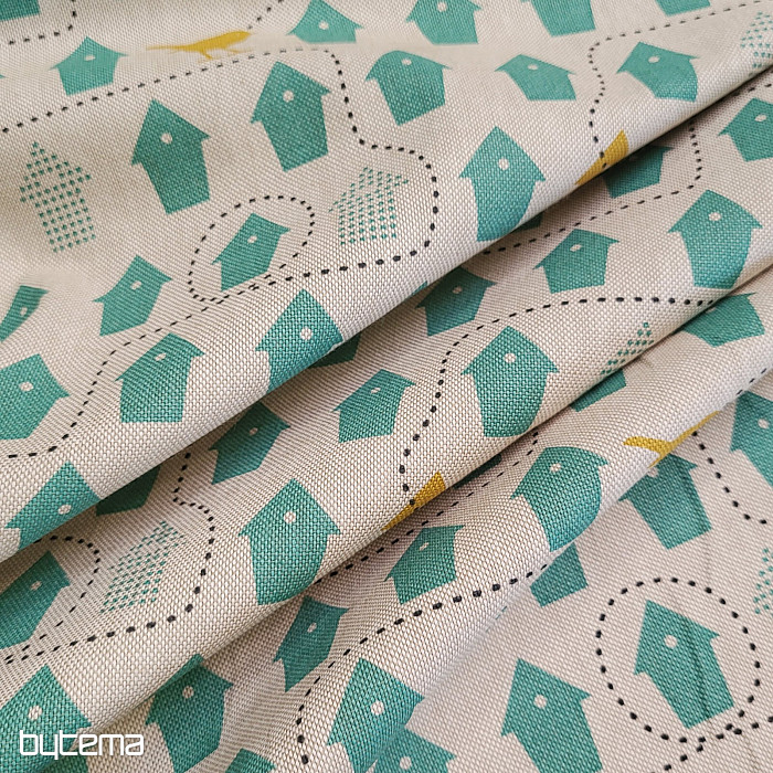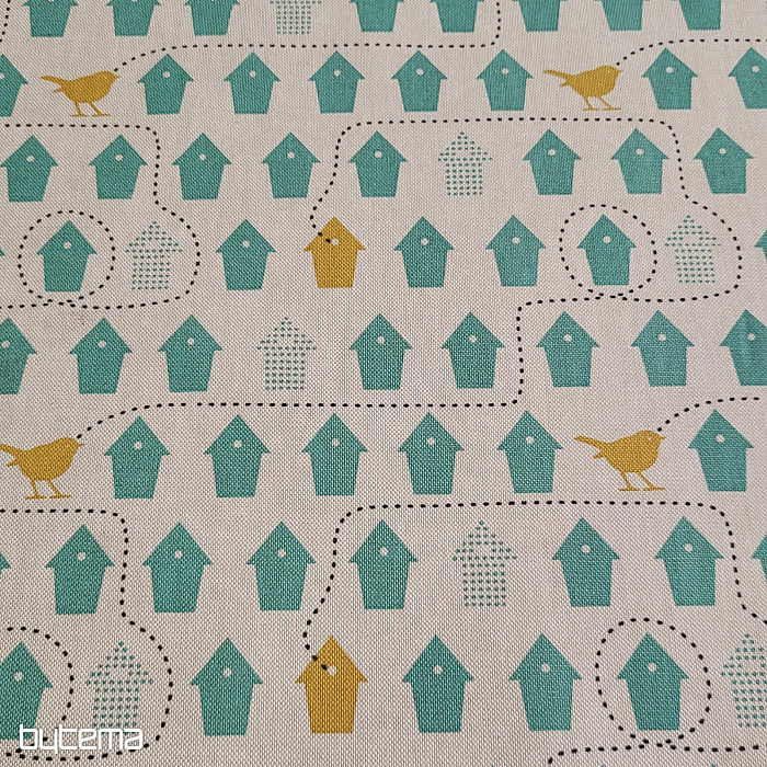 Ein Baumwollstoff voller Vogelhäuser, nur eines zur Auswahl.