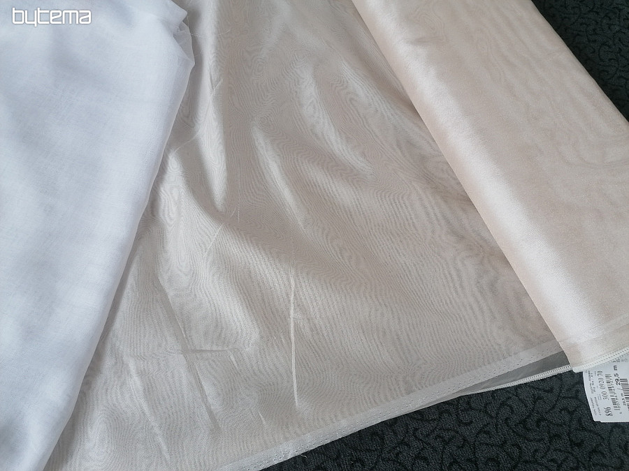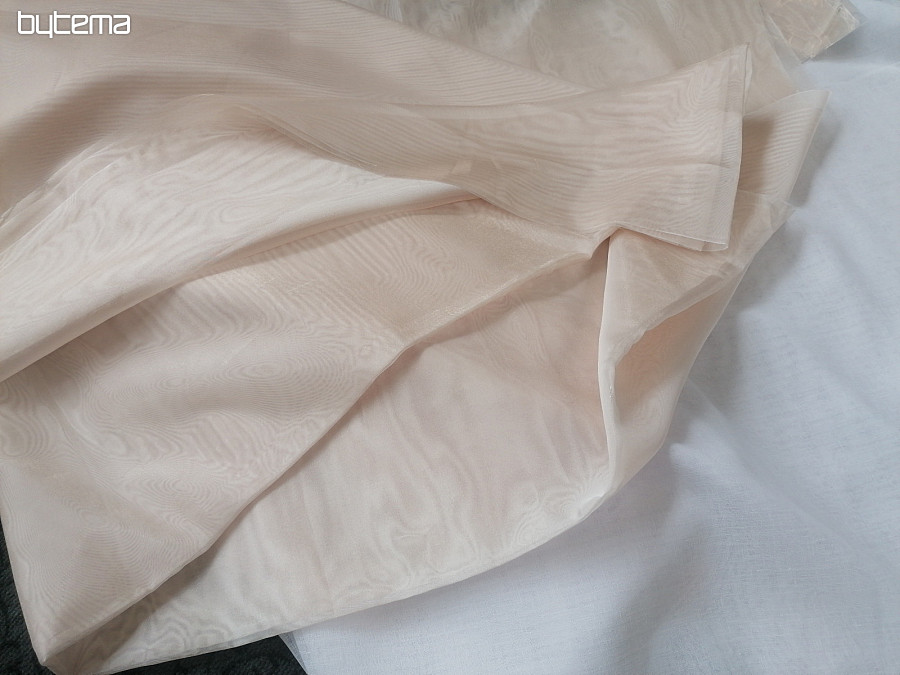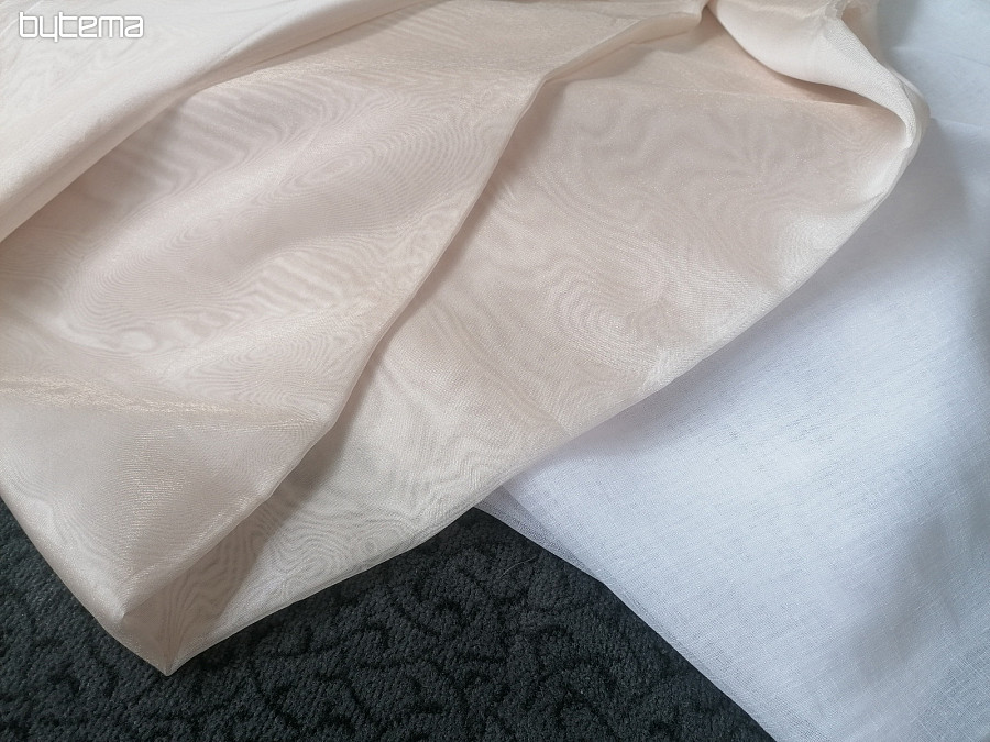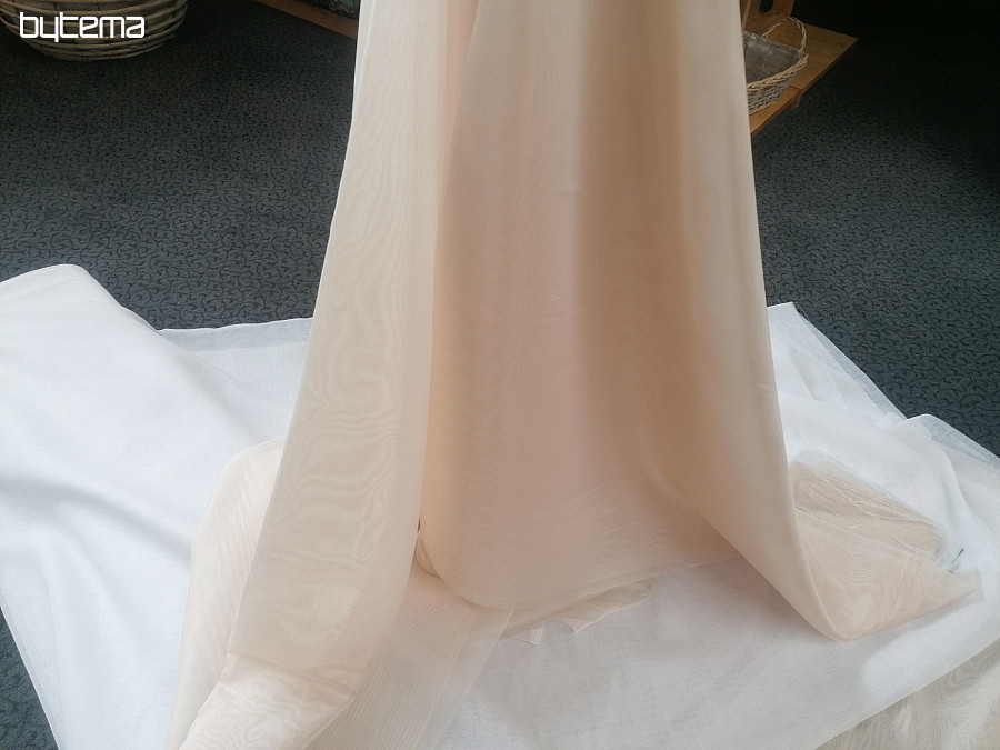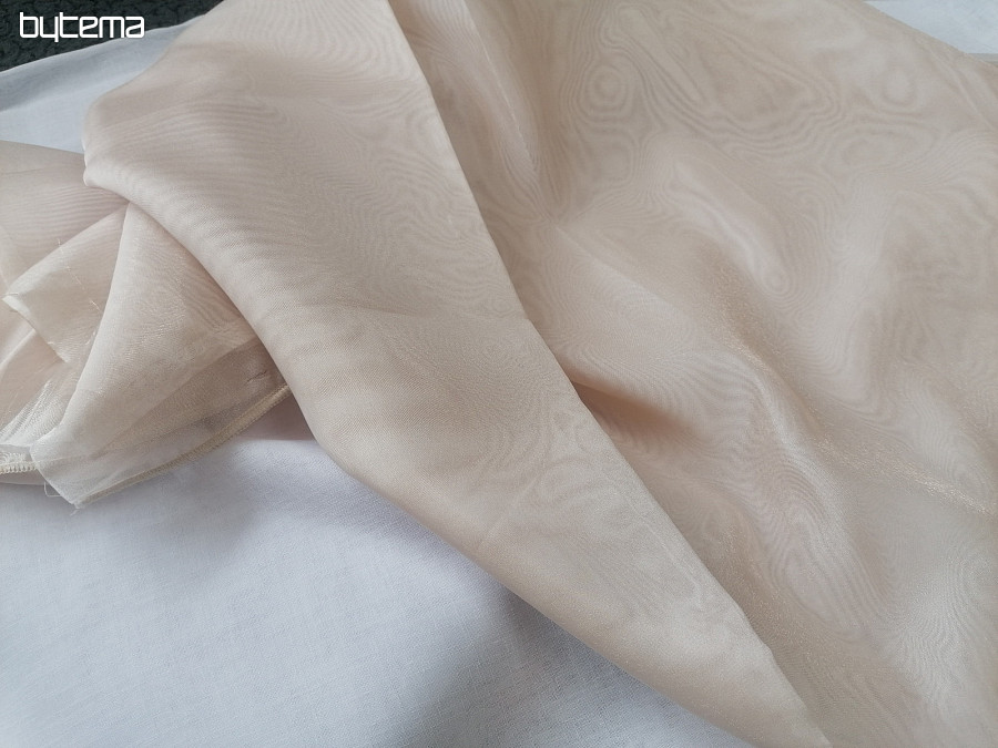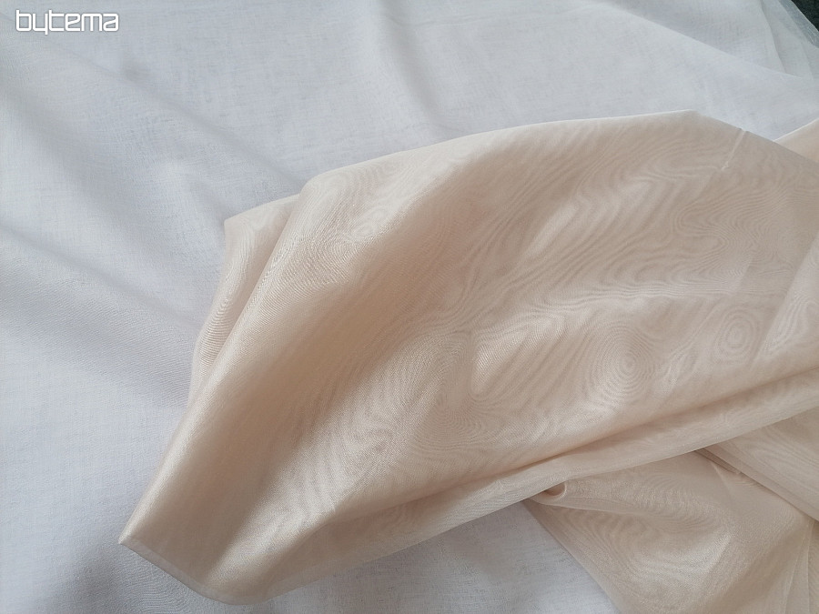 Schöner, moderner Voile-Vorhang beige mit glänzender Optik in der Länge von 300 cm.