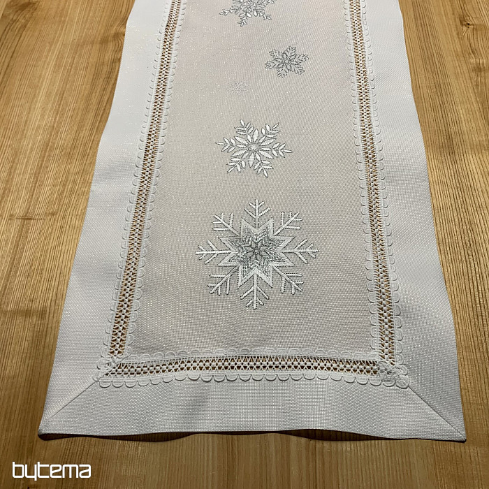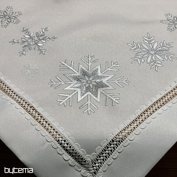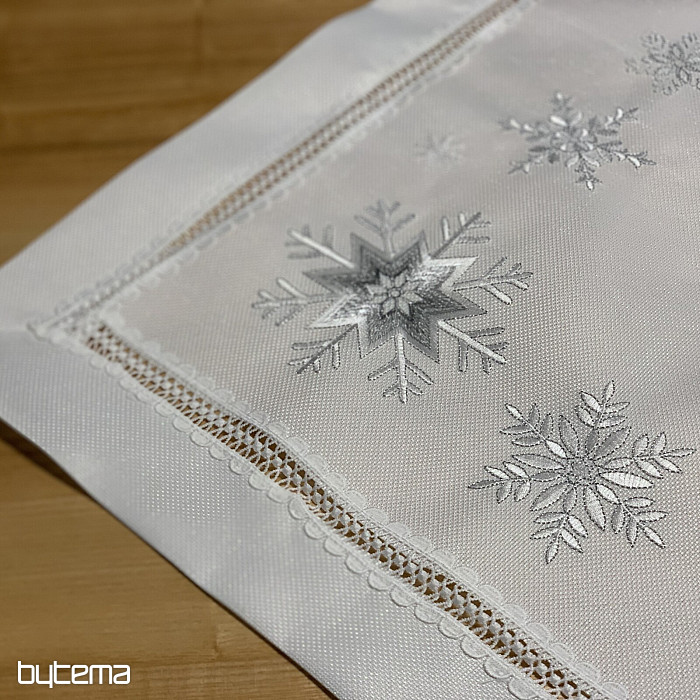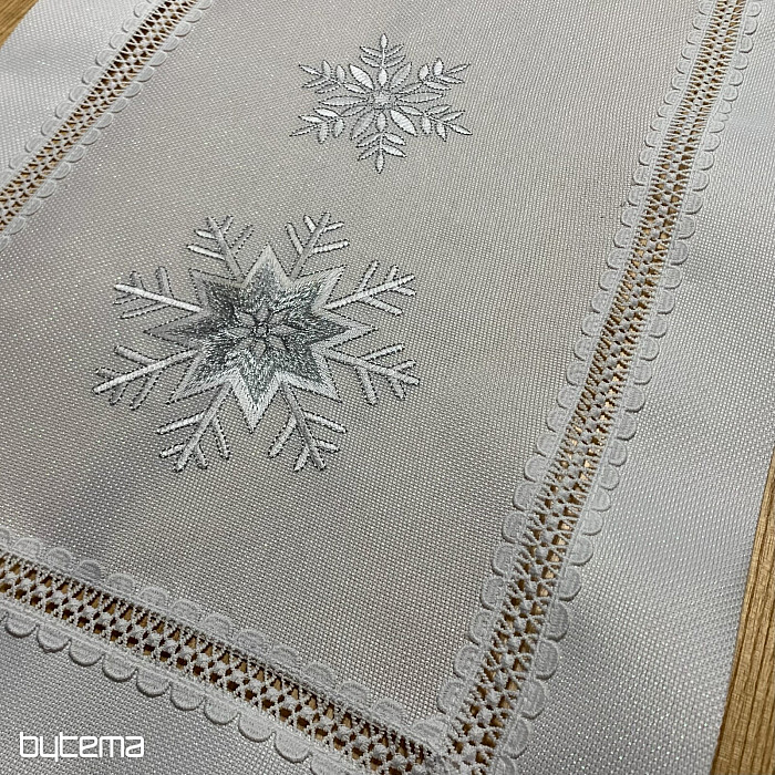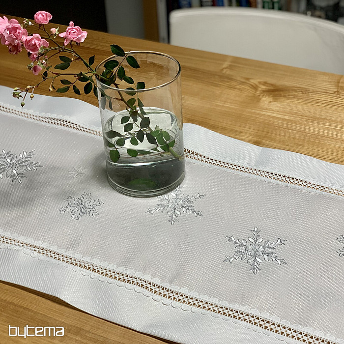 Weihnachtliche Perfektion in Form einer weißen Tischdecke mit gestickten silbernen Schneeflocken wird Ihren Esstisch während der gesamten Festtage schmücken.