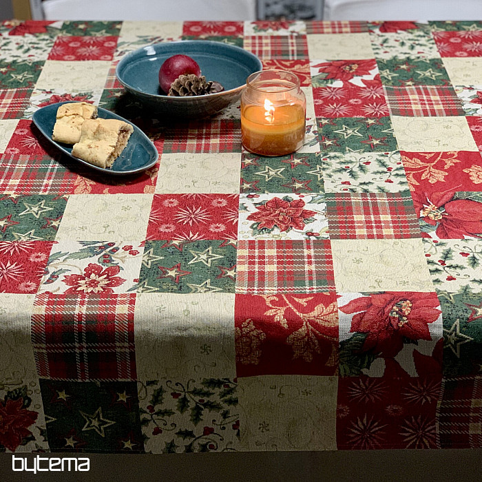 Gobelin-Tischdecken mit weihnachtlichem Motiv im Patchwork-Design bringen weihnachtliche Stimmung in Ihre Küche, Ihr Esszimmer oder Ihr Wohnzimmer. Passend dazu erhalten Sie auch Kissenbezüge aus dieser Kollektion.