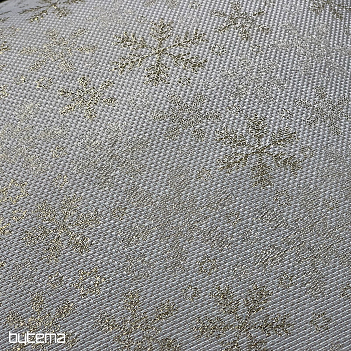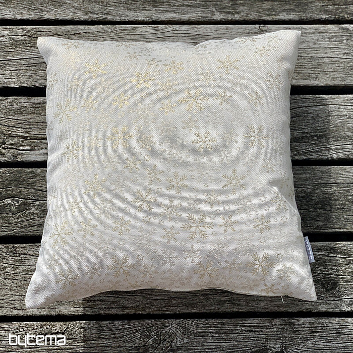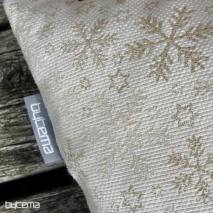 Weihnachtsdeko-Cover mit einem Design aus wunderschönen großen und kleinen goldenen Schneeflocken auf cremefarbenem Hintergrund werden eine zauberhafte Dekoration in Ihrem Zuhause sein.