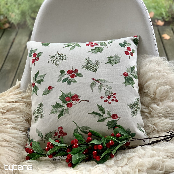 Der weihnachtliche Deko-Kissenbezug mit Stechpalme und roten Beeren ist ein Symbol für Weihnachten und passt in jedes Interieur, besonders in der kälteren Jahreszeit.