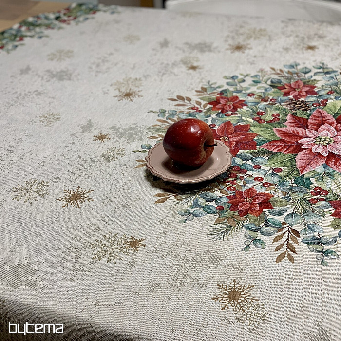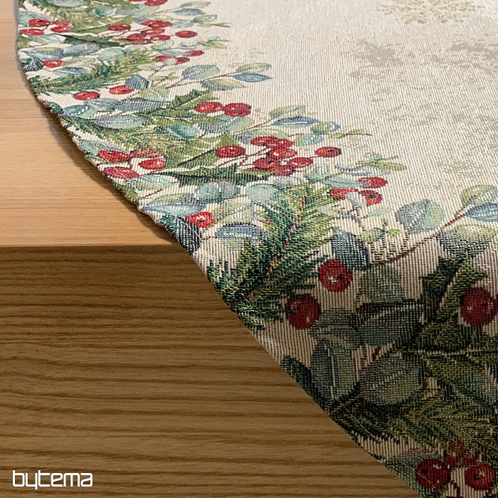 Runde, weihnachtliche Wandteppich-Tischdecken mit einem Christrosenmotiv sind eine wunderschöne Dekoration für Ihren Weihnachtstisch.